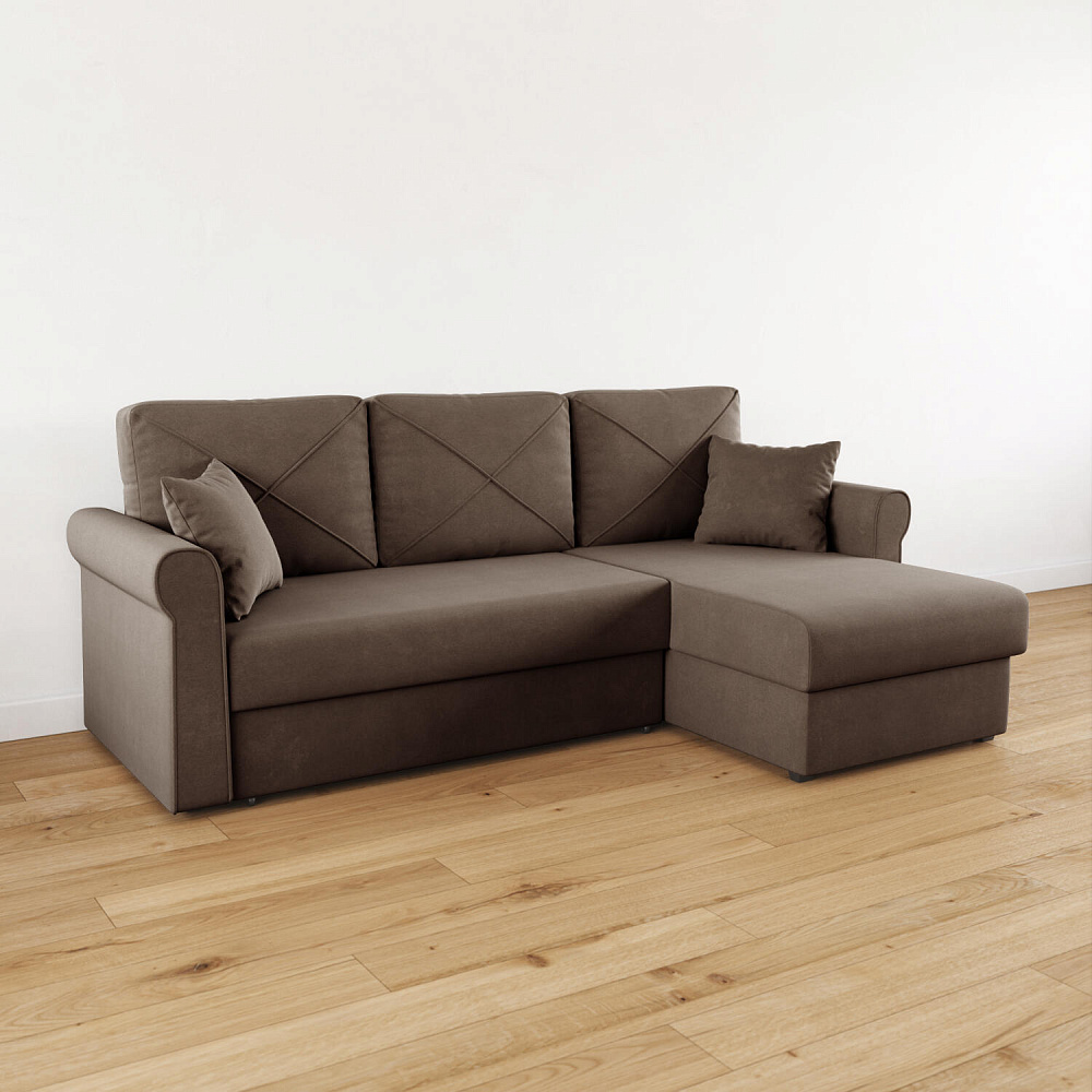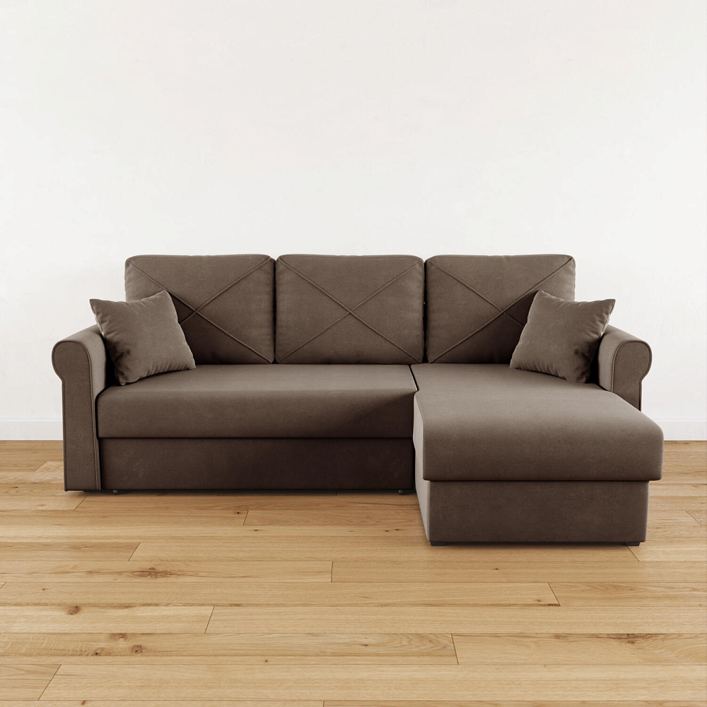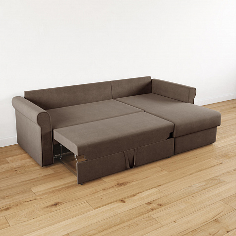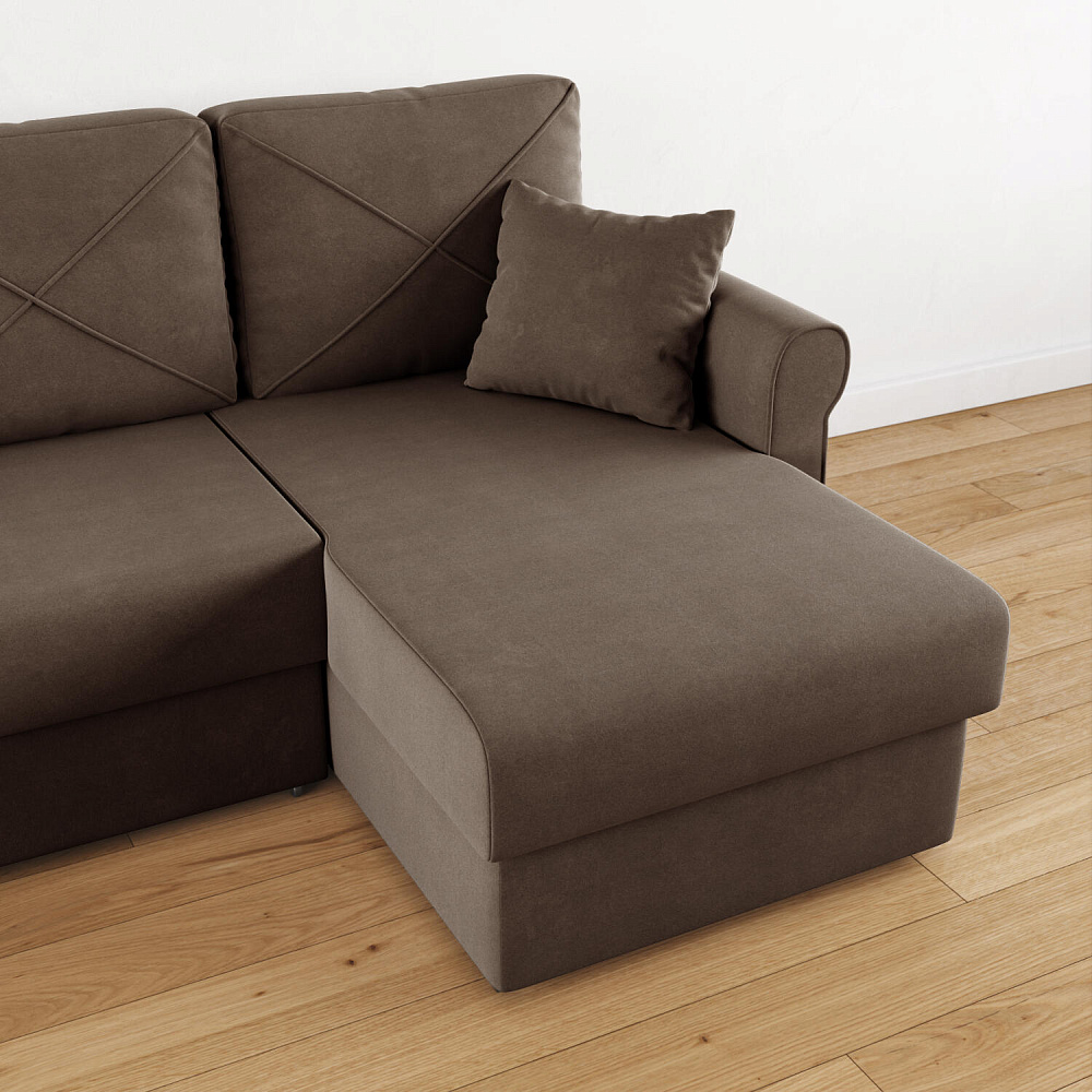 - Вместительный короб. В угловой части дивана скрыт ящик для постельных принадлежностей.