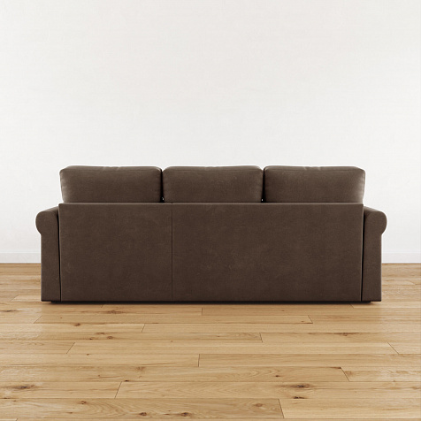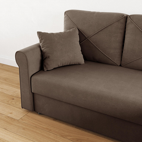 - Обивка из велюра. Диван выполнен в приятной на ощупь ткани, которая пропускает воздух, тянется и устойчива к истиранию.