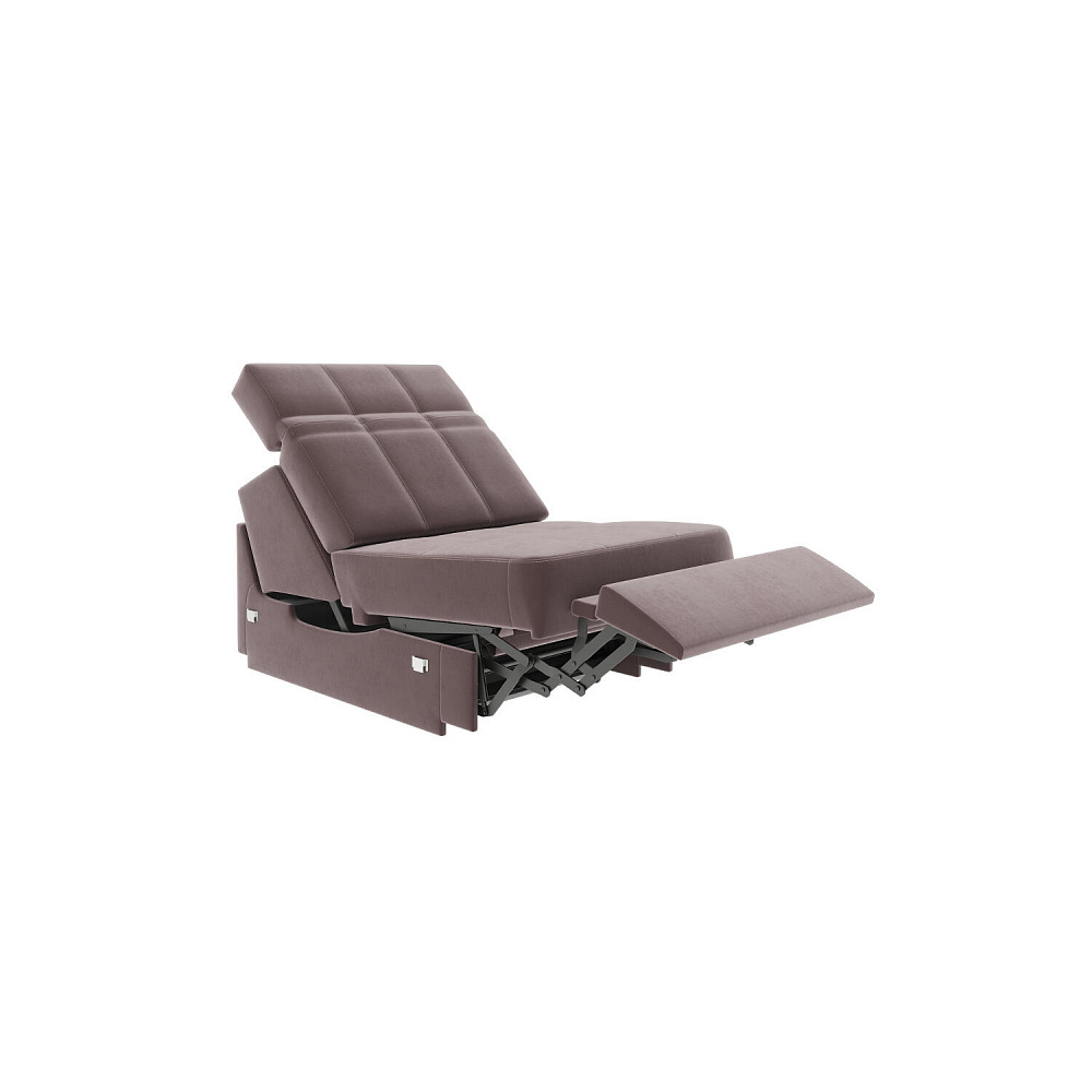 Кресло «Бруно» без подлокотников может входить как в комплектацию дивана, так и быть отдельно стоящим модулем. Кресло разработано для настоящих ценителей комфорта. С помощью проводного пульта механизм трансформирует модуль и позволяет принять максимально удобное положение тела.