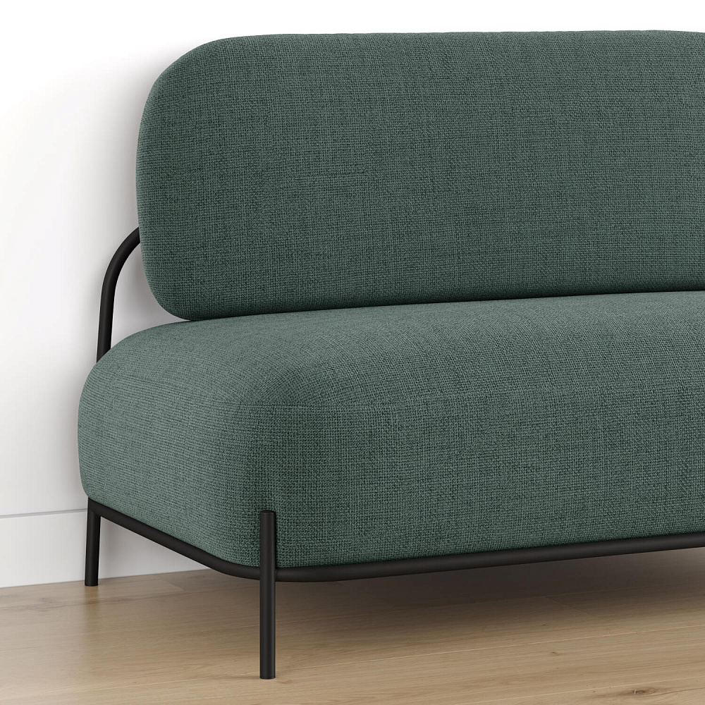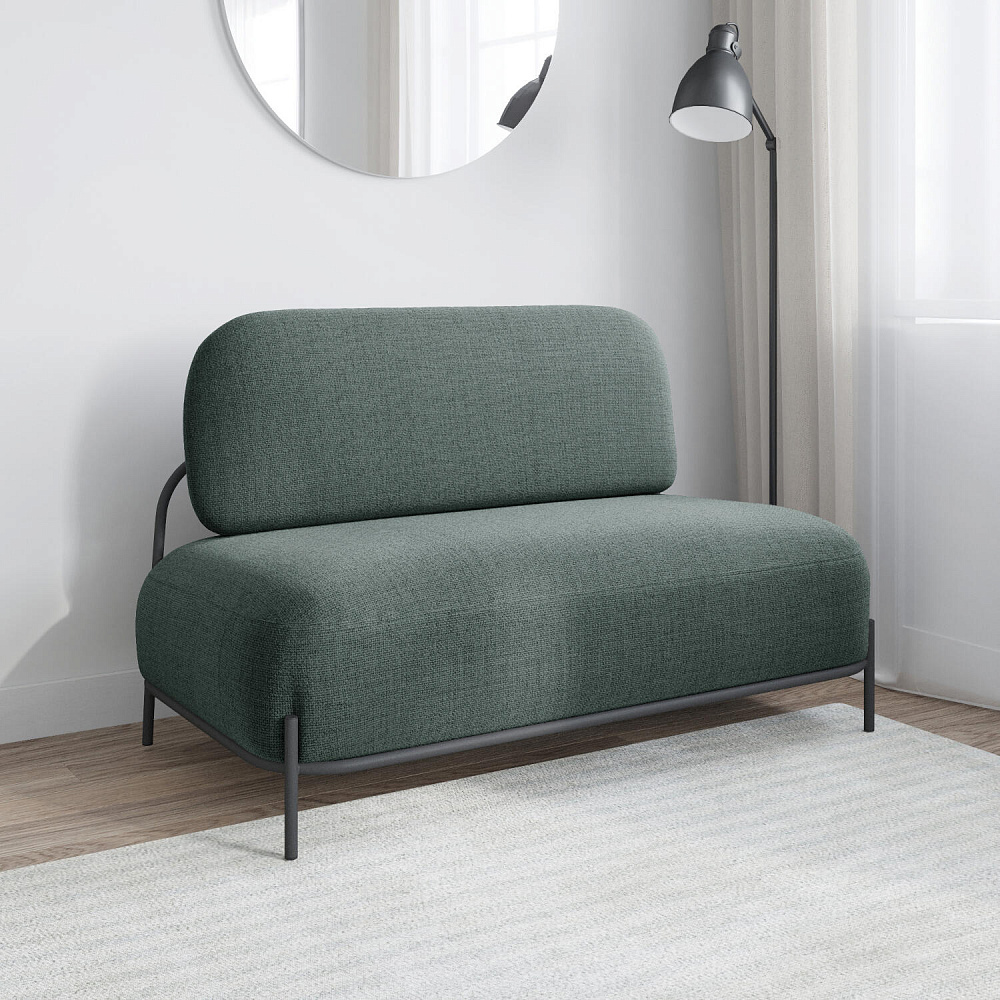 Двухместный диван «Луффи» — оригинальная модель, которая украсит любую комнату в современном стиле. Контрастное сочетание мягких форм и тонких металлических опор поможет создать уютную и легкую зону отдыха. Задняя часть спинки выполнена в обивочной ткани, что позволяет разместить диван в центре комнаты.