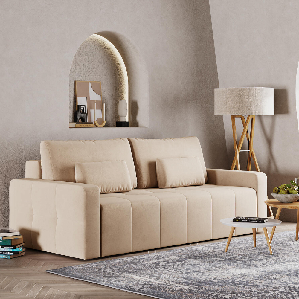 Диван «Тормес» — это находка для современной гостиной или стильной студии. Механизм трансформации «Еврокнижка» в сложенном виде позволяет сэкономить пространство в комнате, в разложенном — обеспечивает комфортное и ровное спальное место. Благодаря независимому пружинному блоку и высокопрочной пене, модель идеально подойдет для ежедневного сна. Спинка выполнена в обивочной ткани, поэтому диван можно расположить в центре помещения и зонировать пространство по своему вкусу.