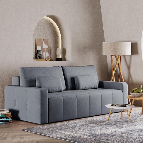 Диван «Тормес» — это находка для современной гостиной или стильной студии. Механизм трансформации «Еврокнижка» в сложенном виде позволяет сэкономить пространство в комнате, в разложенном — обеспечивает комфортное и ровное спальное место. Благодаря независимому пружинному блоку и высокопрочной пене, модель идеально подойдет для ежедневного сна. Спинка выполнена в обивочной ткани, поэтому диван можно расположить в центре помещения и зонировать пространство по своему вкусу.