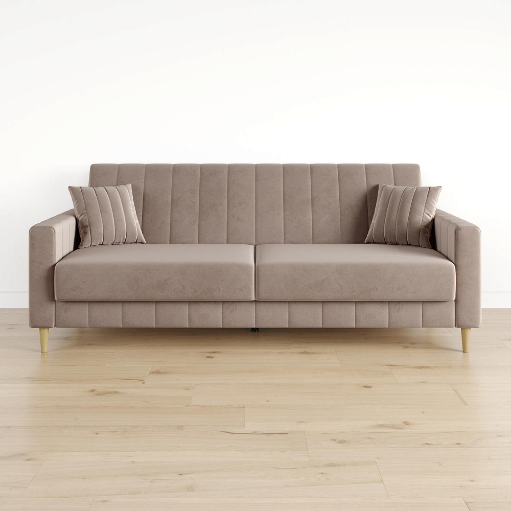 Диван-книжка «Бронкс» украсит гостиную в современном или скандинавском стиле. Модель предлагает уютный дизайн с прямыми формами, спальное место и ящик для хранения. Задняя часть спинки выполнена в основной обивочной ткани, что дает возможность свободно размещать диван и зонировать пространство комнаты. Высокие опоры из натурального дерева создают легкий эффект невесомости и облегчают процесс уборки.