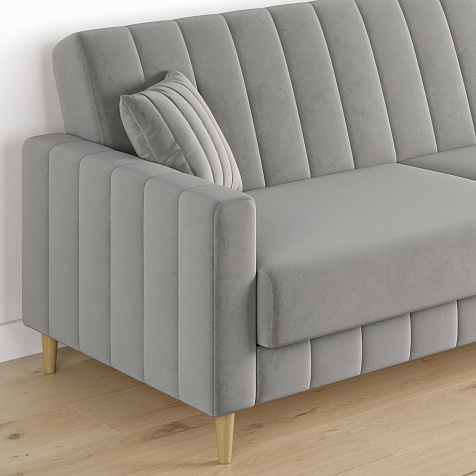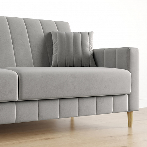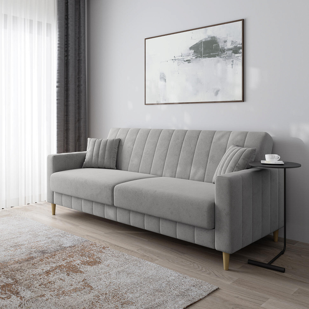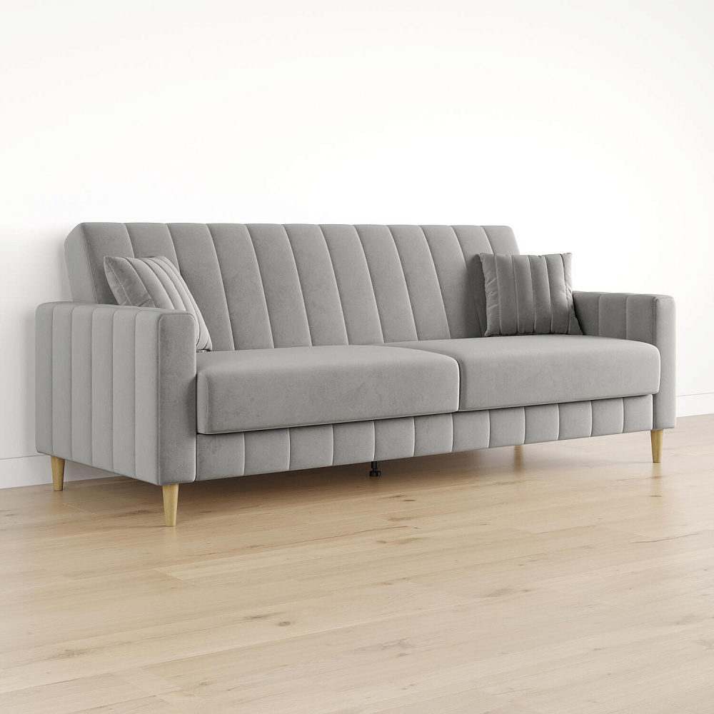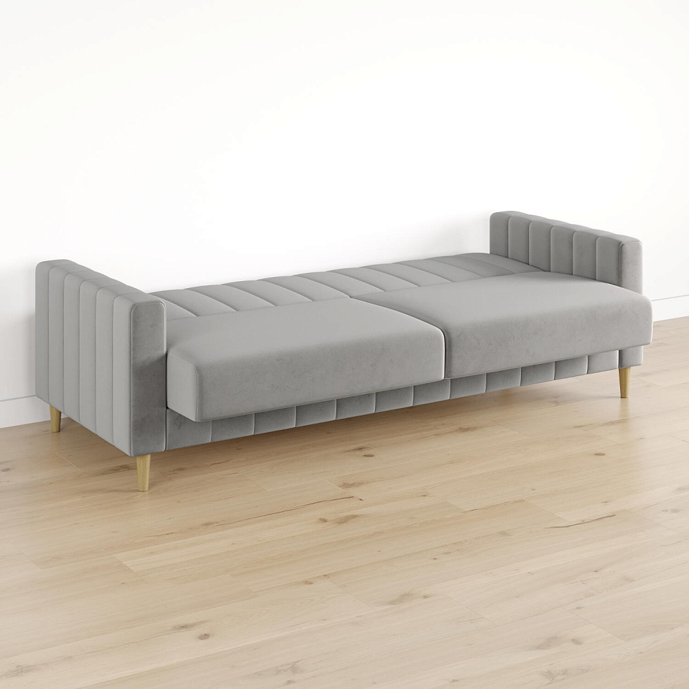 Диван-книжка «Бронкс» украсит гостиную в современном или скандинавском стиле. Модель предлагает уютный дизайн с прямыми формами, спальное место и ящик для хранения. Задняя часть спинки выполнена в основной обивочной ткани, что дает возможность свободно размещать диван и зонировать пространство комнаты. Высокие опоры из натурального дерева создают легкий эффект невесомости и облегчают процесс уборки.