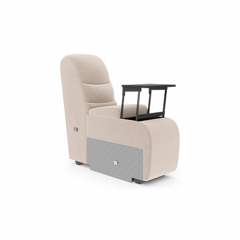 Бар с кофейным столиком и подъёмной столешницей сделает модульный диван Ридберг ещё более практичным местом для отдыха. На кофейный столик можно поставить чашку с ароматным чаем, внутри бара есть место для хранения небольших ёмкостей с напитками. В разложенном виде столешница располагается выше (примерно на уровне локтя) и выдвигается вперёд – таким образом, получается полноценный столик для напитков или работы за ноутбуком.