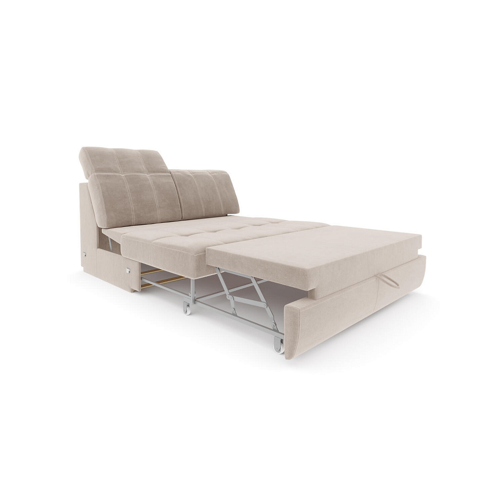 Механизм трансформации «Телескоп». Металлический каркас на основе механизма «дельфин» имеет бесшумное выкатывание благодаря применению обрезиненных роликов: простая трансформация без скрипа позволяет превратить диван в полноценное спальное место, которое по комфорту приближено к матрасу и гарантирует максимальное расслабление и крепкий сон.
