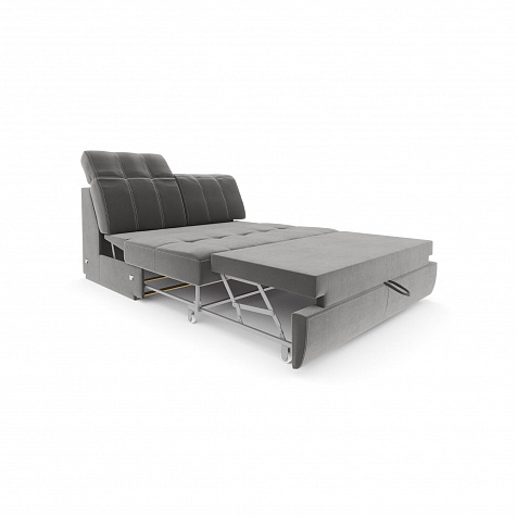 Механизм трансформации «Телескоп». Металлический каркас на основе механизма «дельфин» имеет бесшумное выкатывание благодаря применению обрезиненных роликов: простая трансформация без скрипа позволяет превратить диван в полноценное спальное место, которое по комфорту приближено к матрасу и гарантирует максимальное расслабление и крепкий сон.
