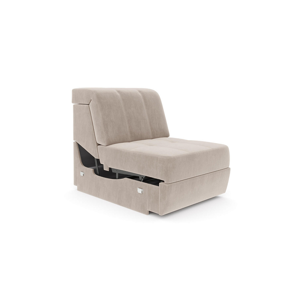 Кресло «Бруно» без подлокотников может входить как в комплектацию дивана, так и быть отдельно стоящим модулем. Кресло разработано для настоящих ценителей комфорта. С помощью проводного пульта механизм трансформирует модуль и позволяет принять максимально удобное положение тела.
