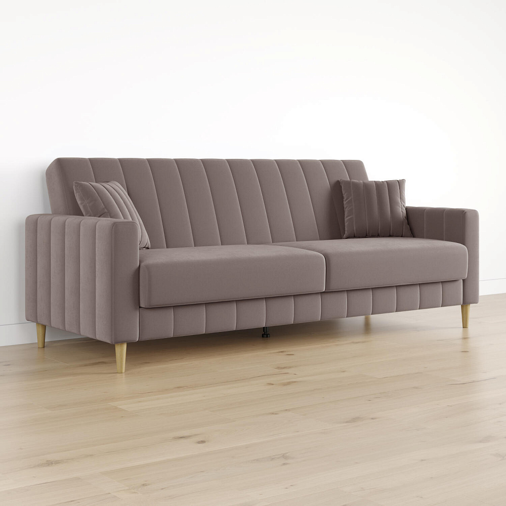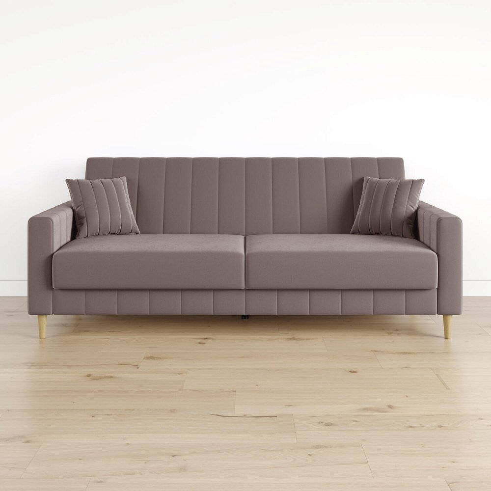 Механизм трансформации «Книжка». Чтобы разложить диван, нужно приподнять спинку и сиденье до щелчка и положить их вниз. Лучше ставить диван на расстоянии от стены, чтобы не двигать его при трансформации.