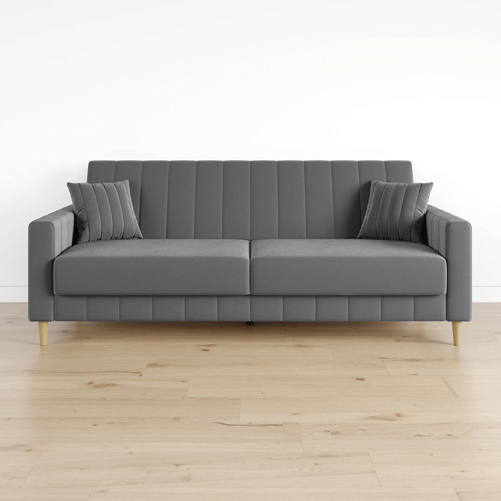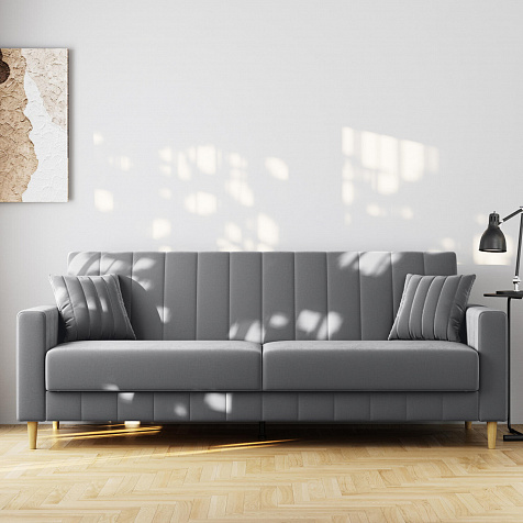 Диван «Бронкс» дополнит гостиную в современном или скандинавском стиле. Модель сочетает в себе минималистичный дизайн, спальное место и ящик для хранения. Задняя часть спинки выполнена в основной обивочной ткани, что дает возможность свободно размещать диван и зонировать комнату. Высокие опоры из натурального дерева создают легкий эффект невесомости и значительно облегчают процесс уборки.