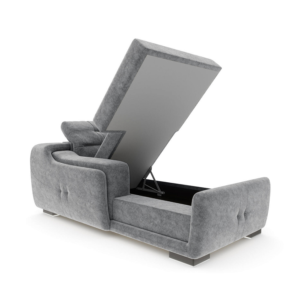 Оттоманка модульной системы «Пекин» с подлокотником имеет регулируемый подголовник и просторный бельевой ящик под сиденьем.