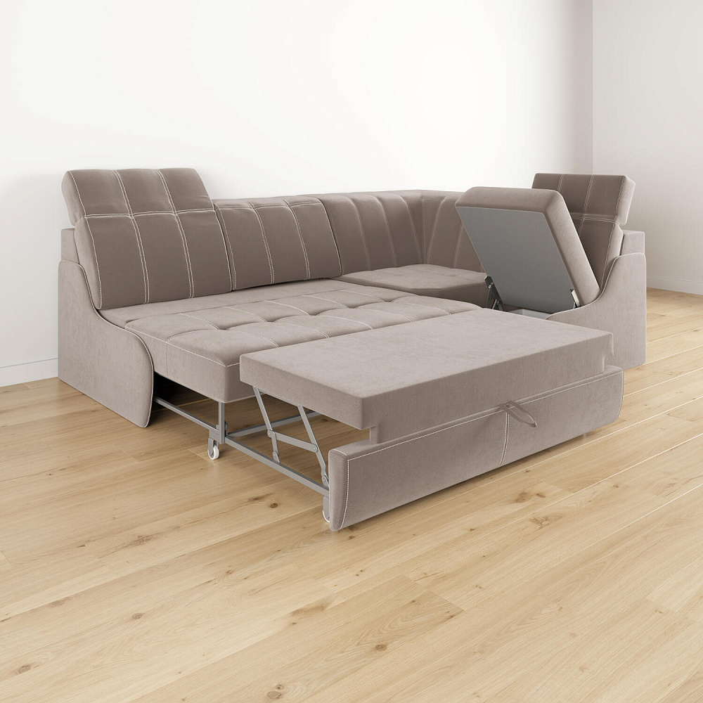 Ящики для белья под кресельной секцией. В конструкции дивана предусмотрено вместительные отделения для хранения постельных принадлежностей, текстиля и других вещей.