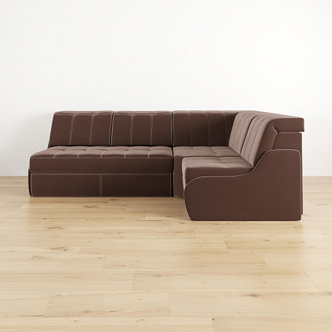 Угловой диван «Бруно» — это лаконичность и строгость, универсальные размеры и высокая функциональность. Данная модель идеально подходит для людей высокого роста. Благодаря регулируемым подъемным подголовникам ваша спина будет всегда в правильном положении. Диван имеет удобную посадку за счет увеличенной глубины сиденья — 62 см. Мягкие элементы в верхней части сиденья в сочетании с высокопрочным пенополиуретаном в основании сиденья позволяют более равномерно распределить нагрузку, придавая дополнительный комфорт и увеличивая срок службы мебели.