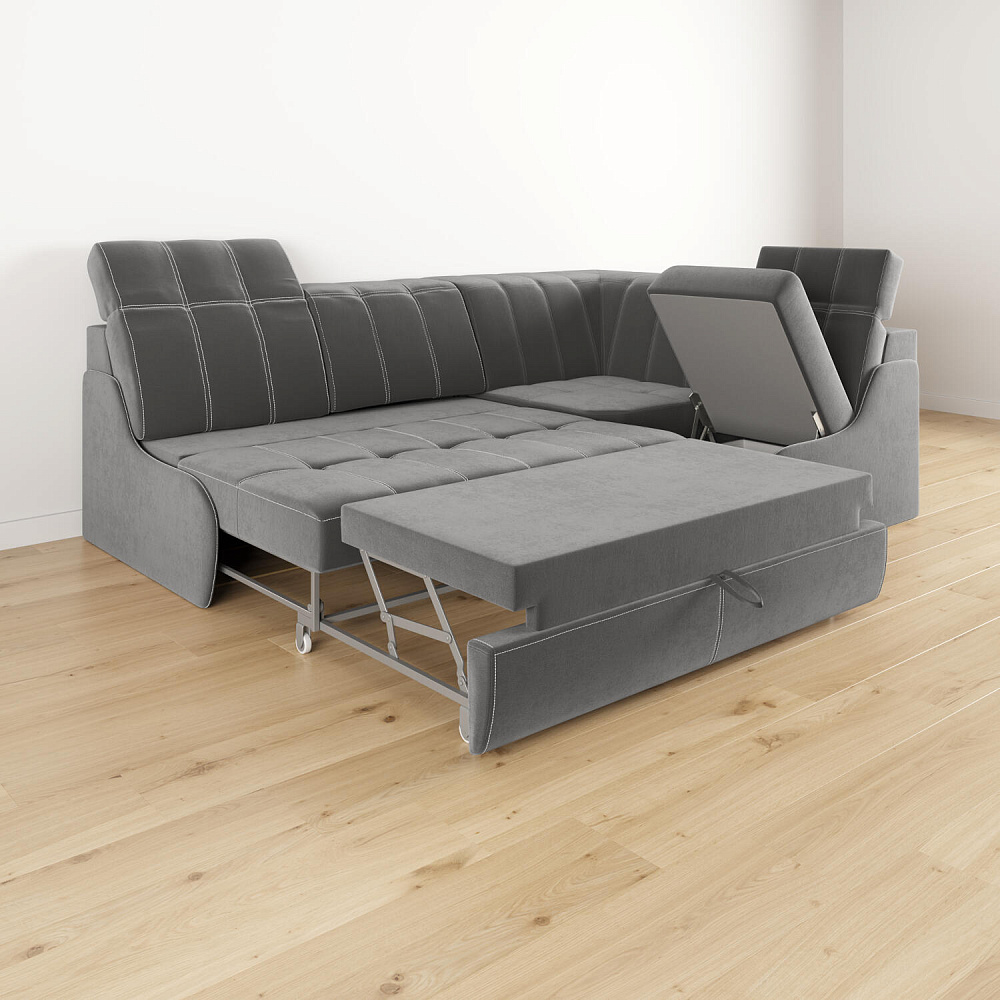 Ящики для белья под кресельной секцией. В конструкции дивана предусмотрено вместительные отделения для хранения постельных принадлежностей, текстиля и других вещей.