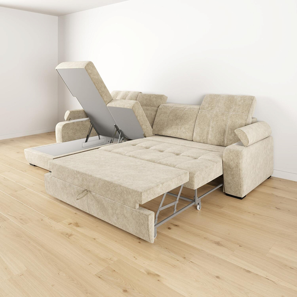 Ящики для белья в подлокотниках и под оттоманкой. В конструкции дивана предусмотрены вместительные отделения для хранения постельных принадлежностей, текстиля и других вещей.