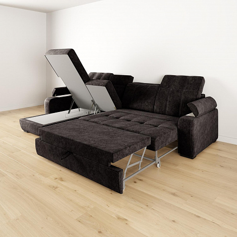 Ящики для белья в подлокотниках и под оттоманкой. В конструкции дивана предусмотрены вместительные отделения для хранения постельных принадлежностей, текстиля и других вещей.
