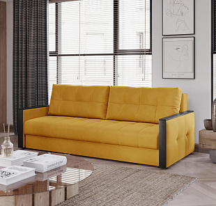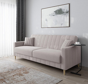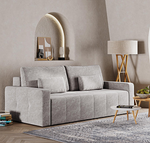 Механизм трансформации «Телескоп». Металлический каркас на основе механизма «Дельфин» имеет бесшумное выкатывание благодаря применению обрезиненных роликов. Простая трансформация без скрипа позволяет превратить диван в полноценное спальное место, которое по комфорту приближено к матрасу и гарантирует максимальное расслабление и крепкий сон.
