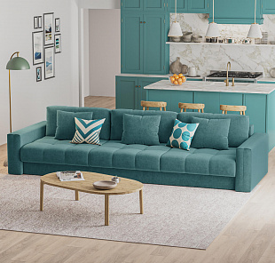 Дизайн «360 градусов». Спинка выполнена в той же обивке, что и весь диван — модель будет изумительно смотреться как у стены, так и в центре комнаты.