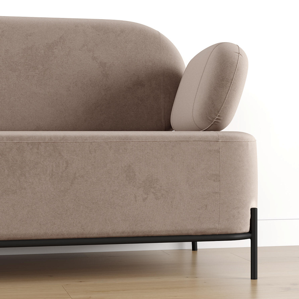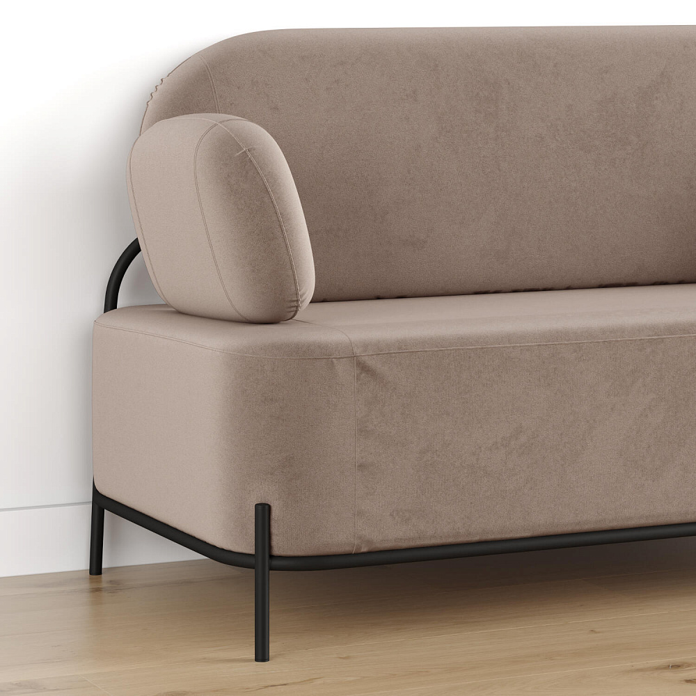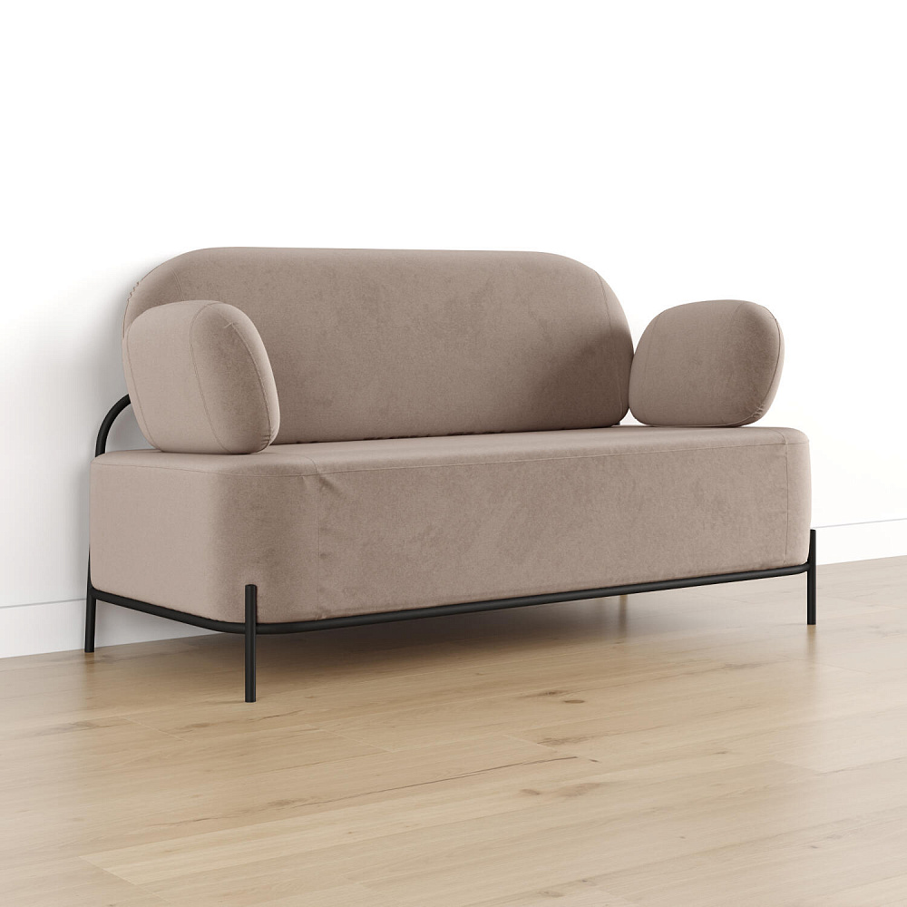 Двухместный диван «Луффи» с подлокотниками — это находка для ценителей оригинальных решений в интерьере. Контрастное сочетание мягких форм и тонких металлических опор поможет создать уютную и легкую зону отдыха. Задняя часть спинки выполнена в обивочной ткани, что позволяет разместить диван в центре комнаты для зонирования пространства.