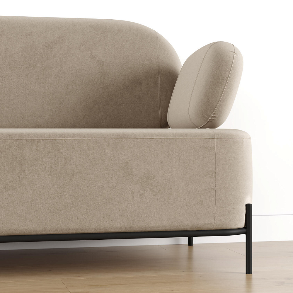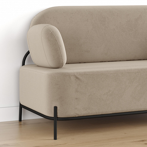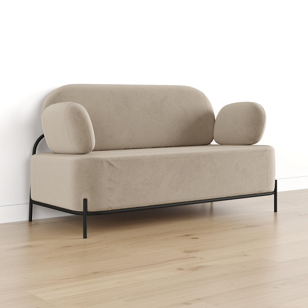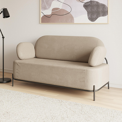 Двухместный диван «Луффи» с подлокотниками — это находка для ценителей оригинальных решений в интерьере. Контрастное сочетание мягких форм и тонких металлических опор поможет создать уютную и легкую зону отдыха. Задняя часть спинки выполнена в обивочной ткани, что позволяет разместить диван в центре комнаты для зонирования пространства.