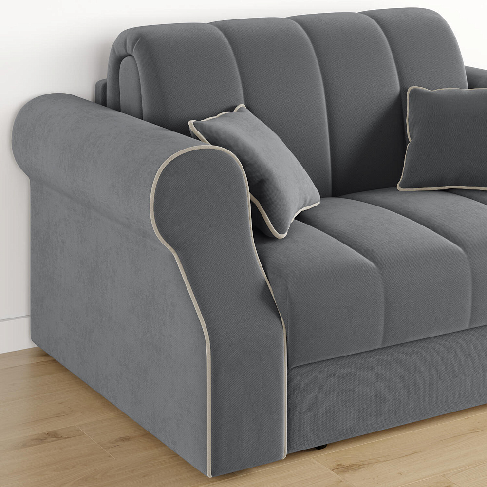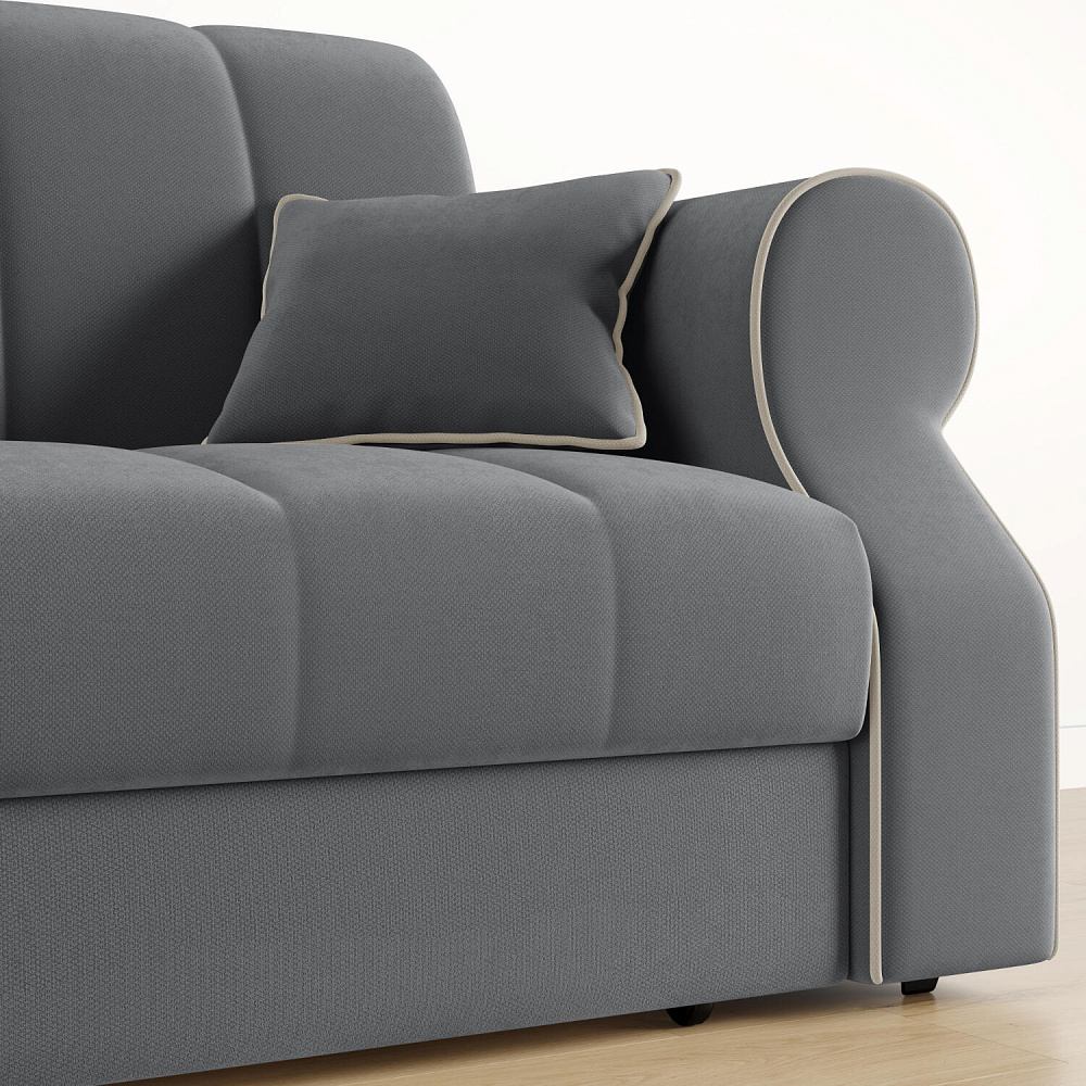 Диван «Париж» идеально подойдёт для обустройства гостевых, компактных спален и детских комнат, где нет возможности разместить классическую кровать. Диван с удобными подлокотниками и глубоким сиденьем позволит максимально расслабиться после тяжёлого дня. Благодаря простому в использовании механизму трансформации «Аккордеон», диван легко превращается в односпальную кровать с ровным спальным местом. Плавность форм и лаконичность модели подчёркивают акцентные линии декоративного канта.