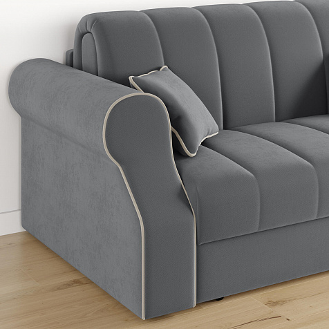 Диван «Париж» идеально подойдет для обустройства гостевых, компактных спален и детских комнат, где нет возможности разместить классическую кровать. Диван с удобными подлокотниками и глубоким сиденьем позволит максимально расслабиться после тяжёлого дня. Благодаря простому в использовании механизму трансформации «Аккордеон», диван легко превращается в кровать с ровным спальным местом. Плавность форм и лаконичность модели подчеркивают акцентные линии декоративного канта.