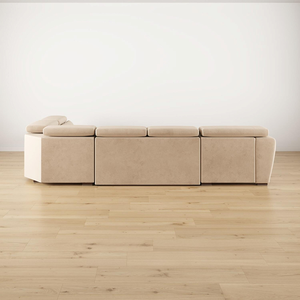 Зонирование пространства. Спинка выполнена в той же обивке, что и весь диван. Модель будет изумительно смотреться как у стены, так и в центре комнаты.