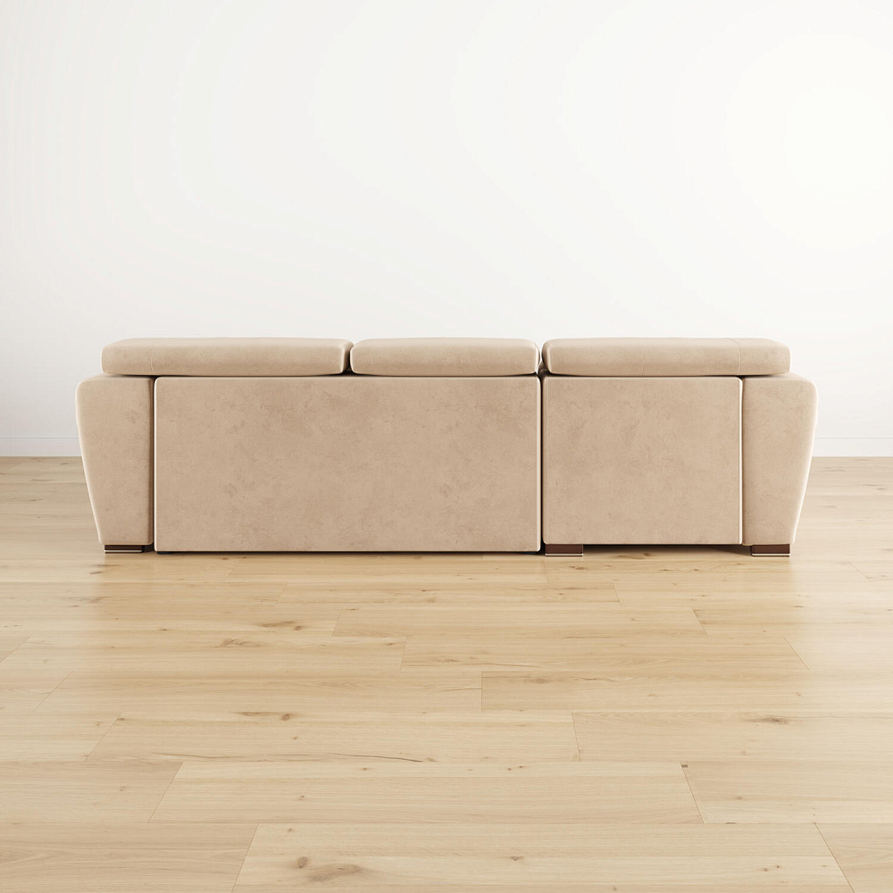 Зонирование пространства. Спинка выполнена в той же обивке, что и весь диван. Модель будет изумительно смотреться как у стены, так и в центре комнаты.