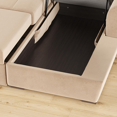 Бельевой короб. Под сиденьем оттоманки есть вместительный ящик для хранения постельных принадлежностей и других вещей.