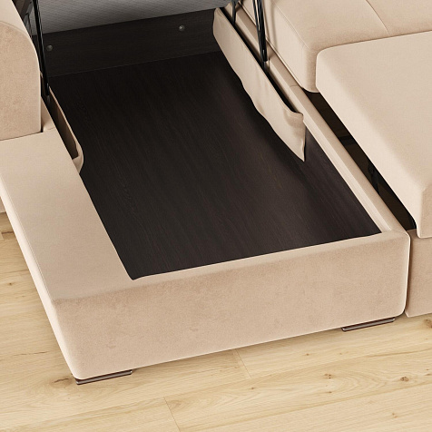 Бельевой короб. Под сиденьем оттоманки есть вместительный ящик для хранения постельных принадлежностей и других вещей.