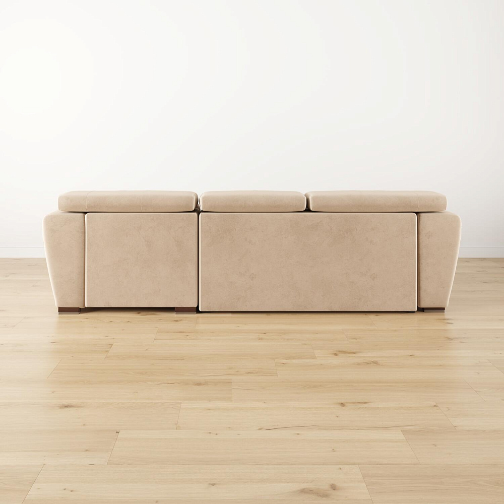 Зонирование пространства. Спинка выполнена в той же обивке, что и весь диван. Модель будет изумительно смотреться как у стены, так и в центре комнаты.