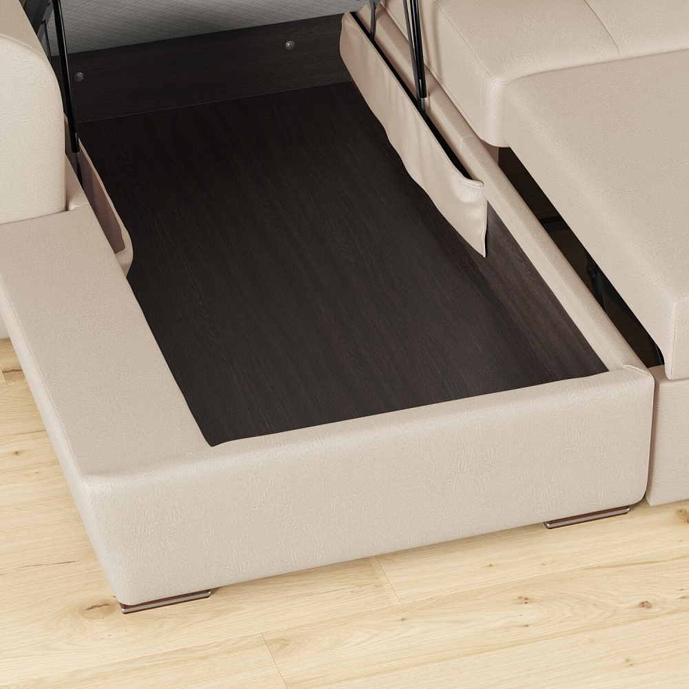 Бельевой короб. Под сиденьем оттоманки есть вместительный ящик для хранения постельных принадлежностей и других вещей.