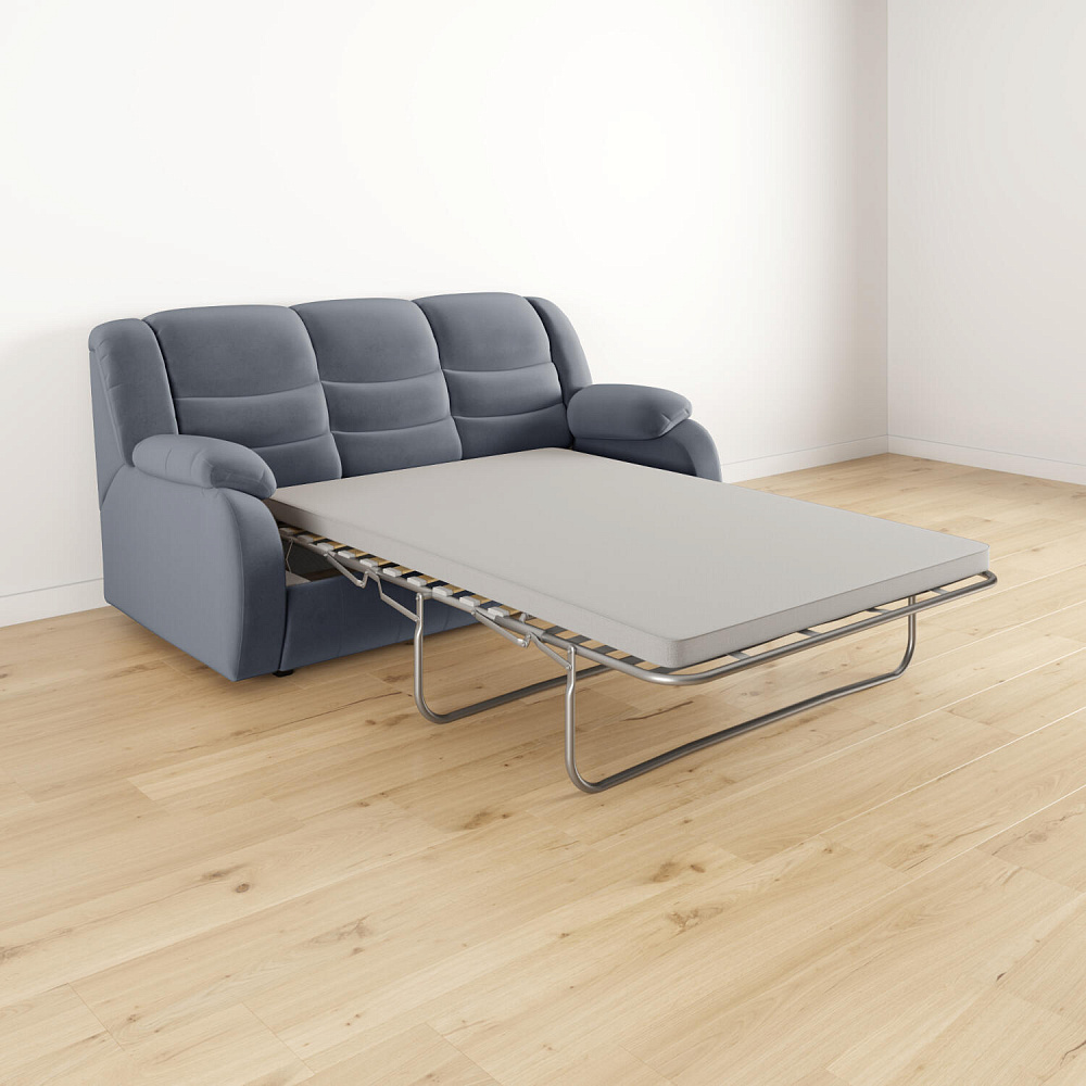 Прямой трёхместный диван-кровать «Ридберг» гостевого типа идеально подойдет для небольшой гостиной в качестве дополнительного спального места. Прекрасная эргономика модели обеспечивает поддержку всей спины за счет ячеистой конструкции подушки спинки и комфортной высоты. Сама спинка состоит из трех частей, при этом плотность набивки каждого отсека разная. Благодаря этому ваш позвоночник всегда будет находиться в комфортном положении.