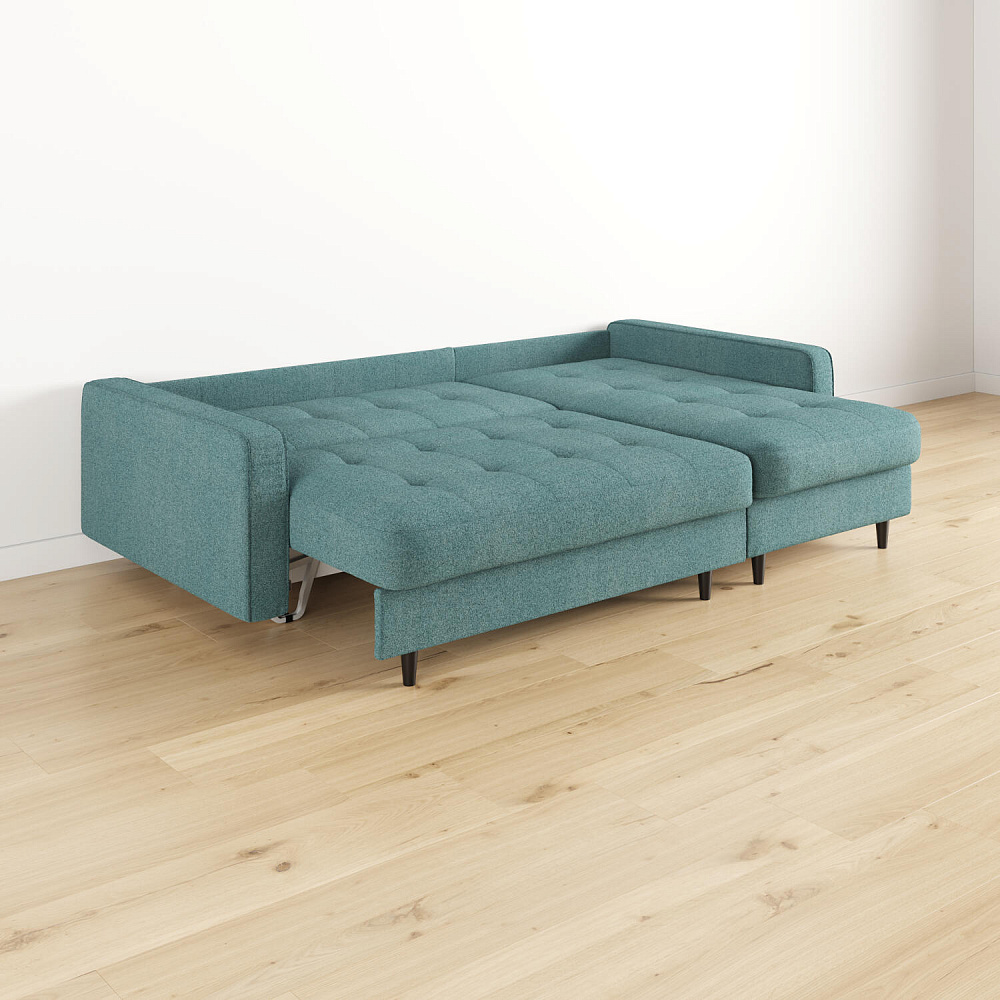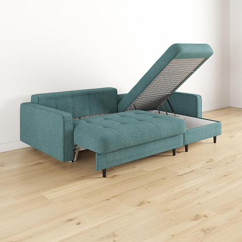 - Легкая уборка под диваном. Высокие опоры позволяют сохранять чистоту, в том числе и с помощью робота-пылесоса.