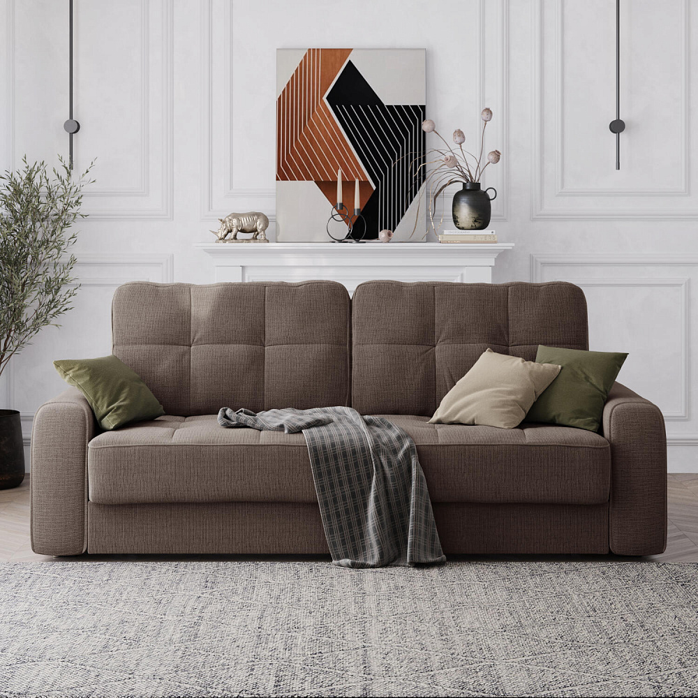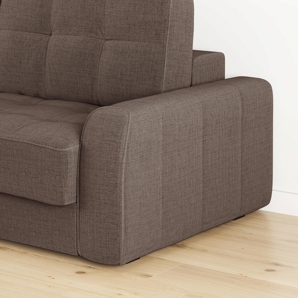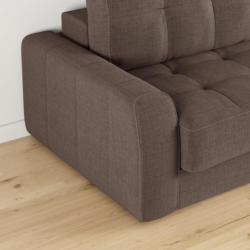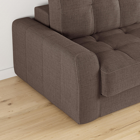 - Обивка из рогожки. Неоднородные меланжевые вкрапления придают дивану графичность и визуальную лёгкость. Рогожка не выцветает, хорошо пропускает воздух и надолго сохраняет первоначальный вид.