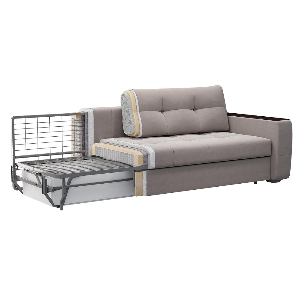 Диван «Неман» — практичная модель с продуманными подлокотниками и современным дизайном. Основа конструкции — сверхпрочный металлокаркас с сеткой «Сандра», который невозможно прогнуть. А механизм «Пантограф» позволяет в считанные секунды складывать и раскладывать диван без лишних усилий. Также у дивана есть дополнительные места хранения под широкими подлокотниками. А сами подлокотники имеют термостойкое покрытие, которое позволяет использовать их как придиванный столик.