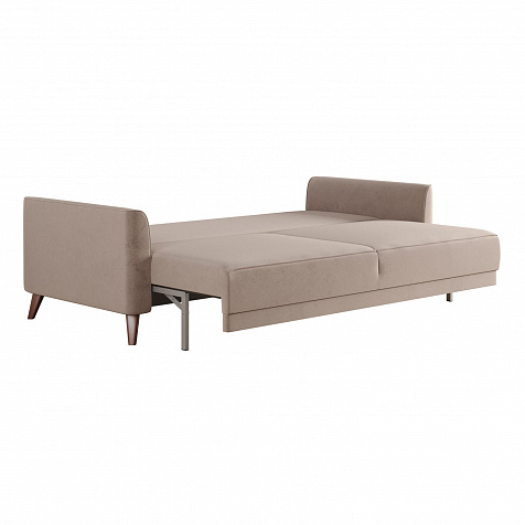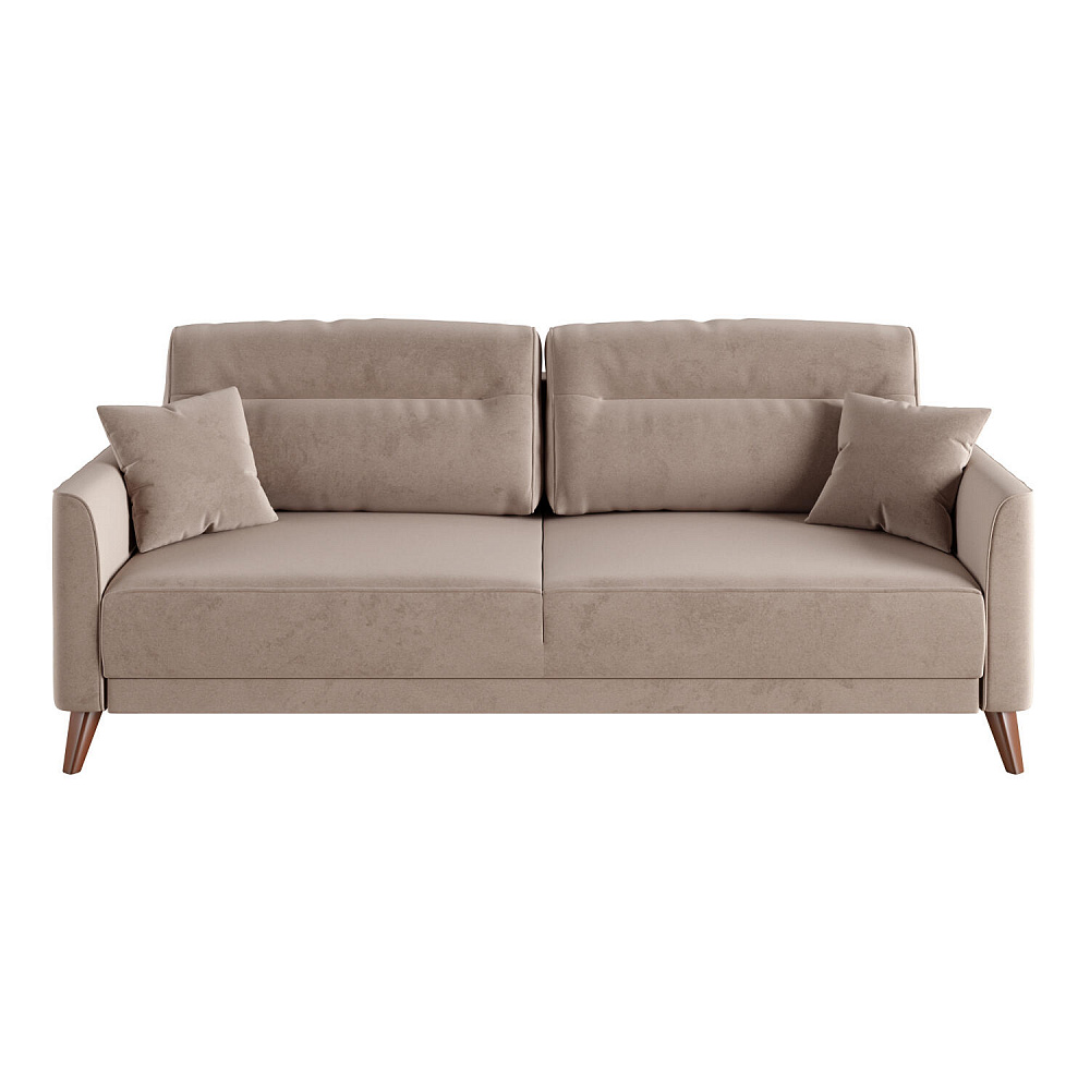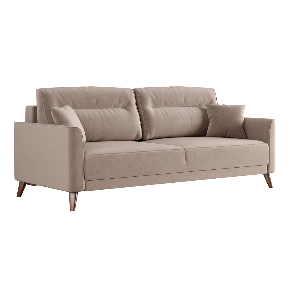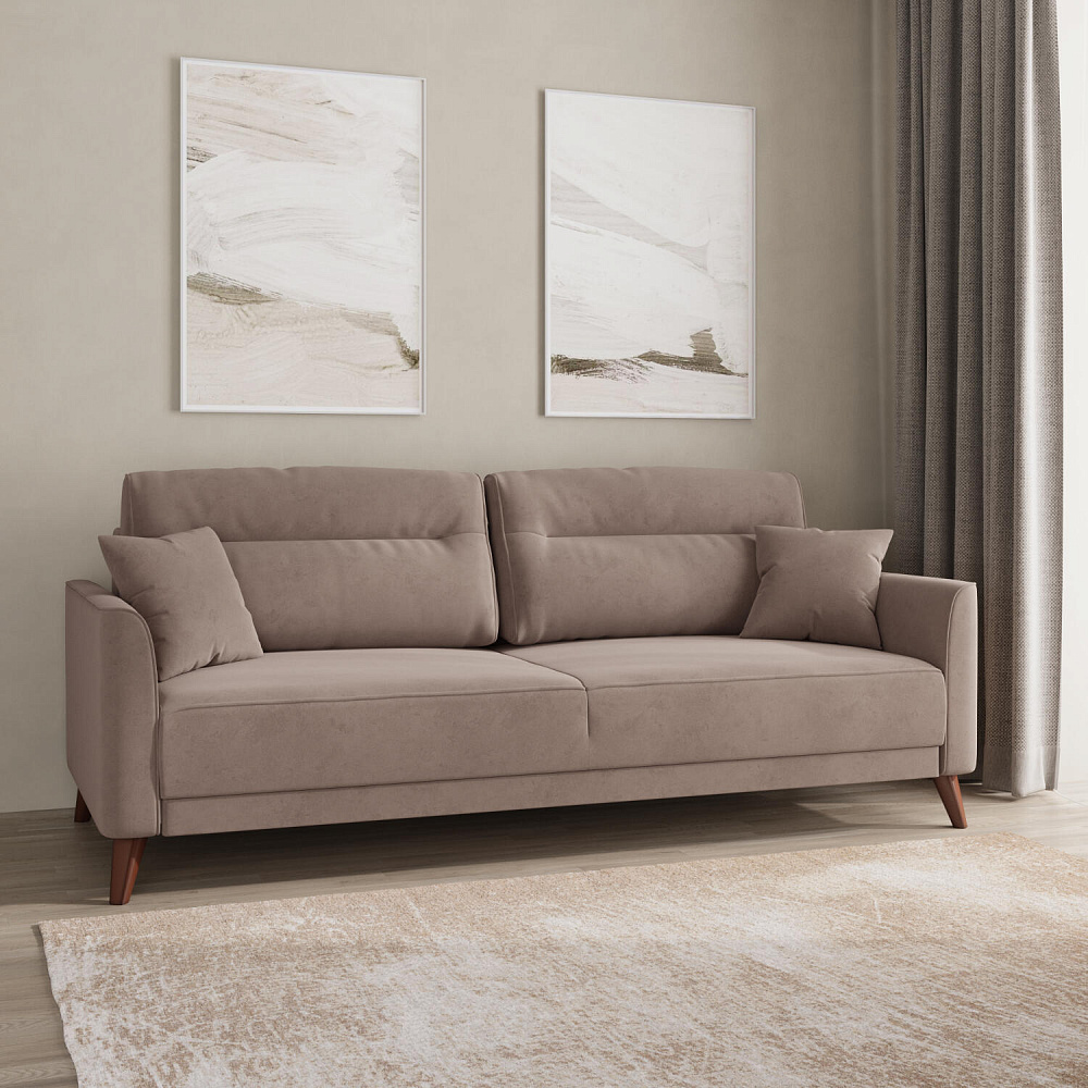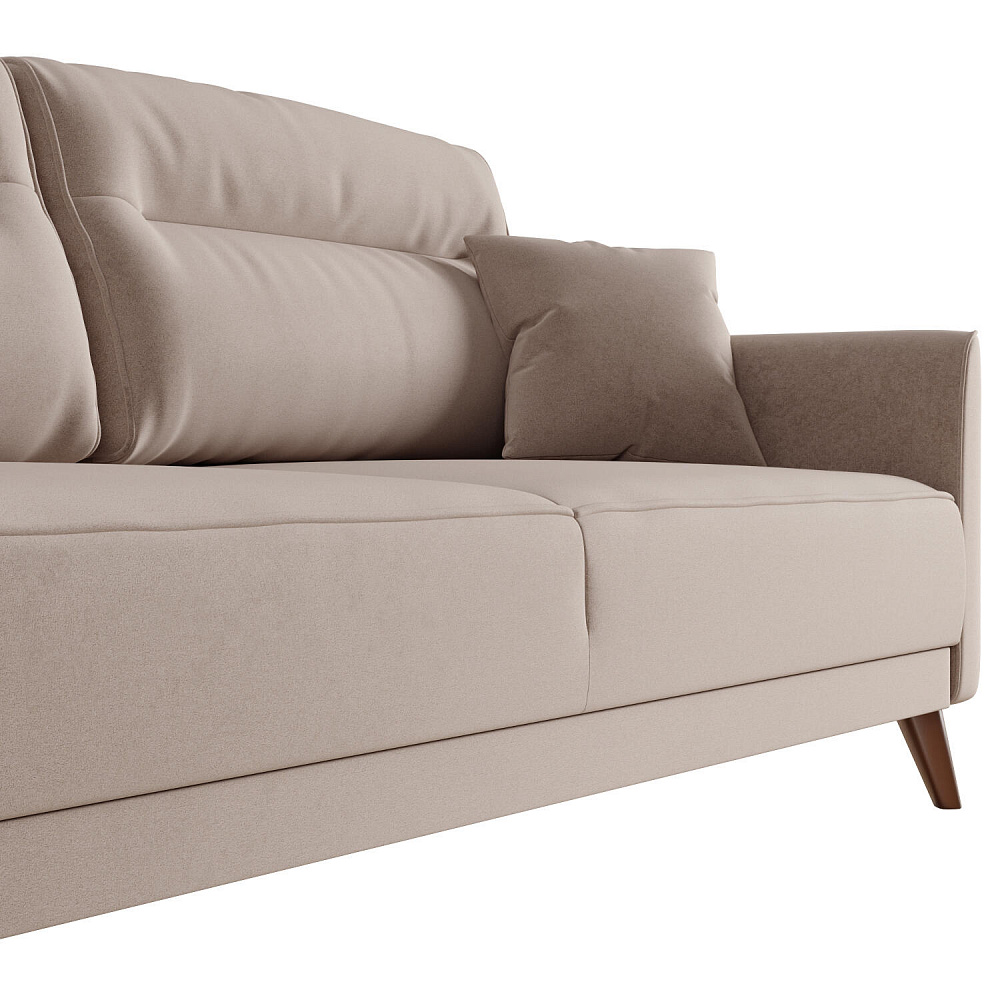 Диван «Монз» с глубокой посадкой оснащён механизмом трансформации и большим бельевым коробом. Дизайн отличается оригинальной строчкой на сиденье и приспинных подушках, декоративными подушками в комплекте и узкими подлокотниками. Высокие опоры визуально облегчают конструкцию дивана и открывают доступ к уборке пространства под ним.