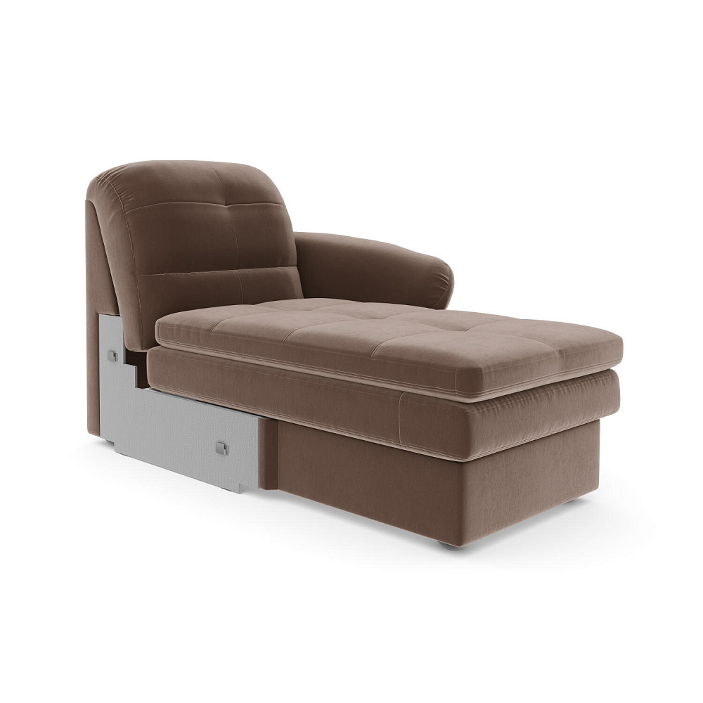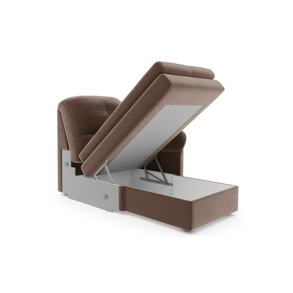 Правая оттоманка «Коннери» является частью модульной системы одноименной коллекции, позволяя составить идеальный угловой диван для вашей гостиной. Модель будет не только удобным местом для отдыха, но и зоной для хранения личных вещей. Сиденье кресла за счет особых эргономических свойств отличается комфортом. Под подъемным основанием находится вместительный ящик для хранения белья.