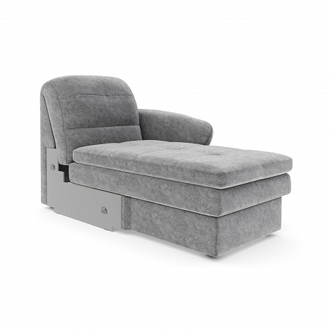 Правая оттоманка «Коннери» является частью модульной системы одноименной коллекции, позволяя составить идеальный угловой диван для вашей гостиной. Модель будет не только удобным местом для отдыха, но и зоной для хранения личных вещей. Сиденье кресла за счет особых эргономических свойств отличается комфортом. Под подъемным основанием находится вместительный ящик для хранения белья.