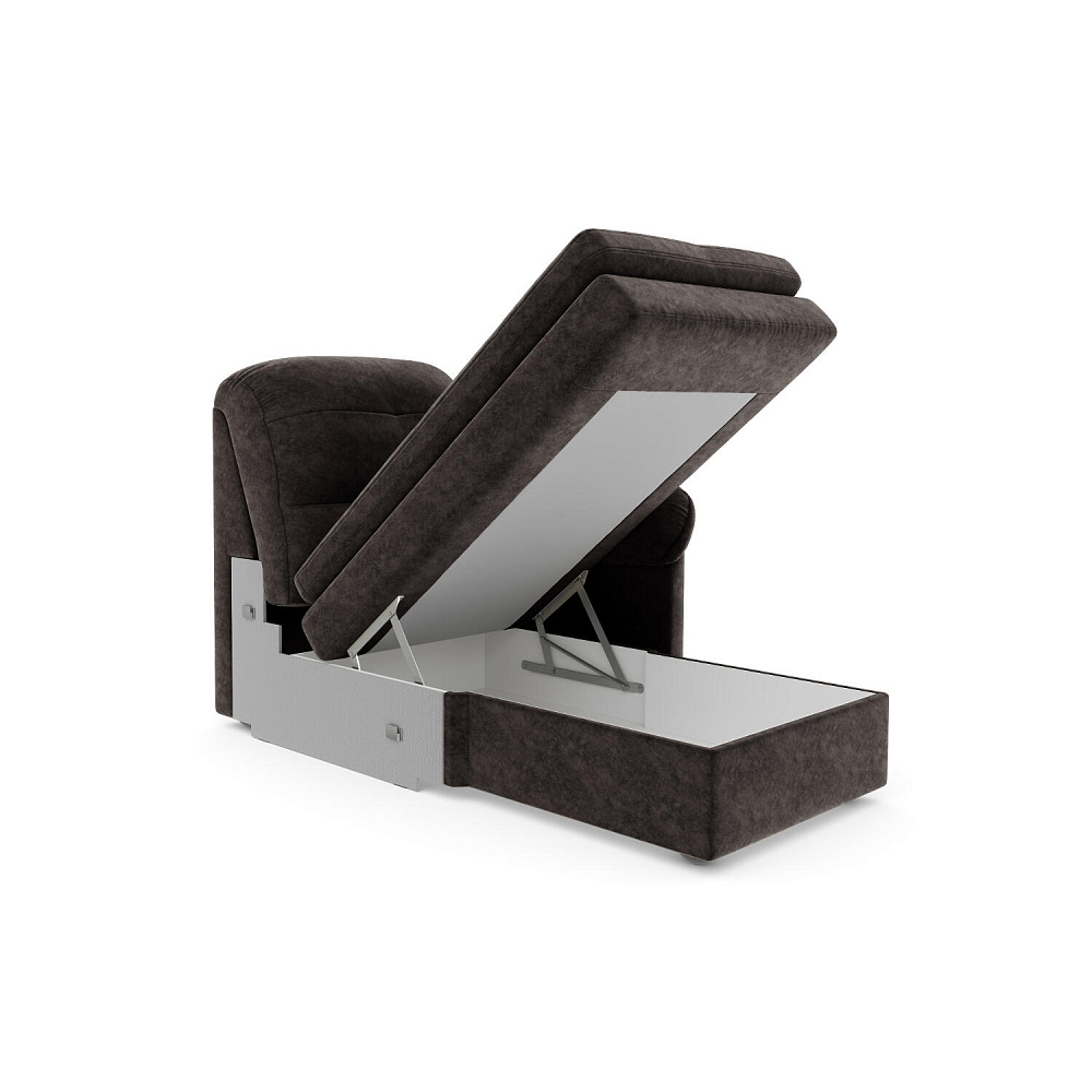 Правая оттоманка «Коннери» является частью модульной системы одноименной коллекции, позволяя составить идеальный угловой диван для вашей гостиной. Модель будет не только удобным местом для отдыха, но и зоной для хранения личных вещей. Сиденье кресла за счет особых эргономических свойств отличается комфортом. Под подъемным основанием находится вместительный ящик для хранения белья.