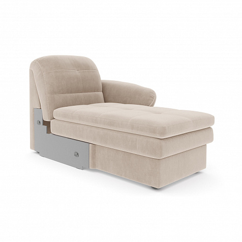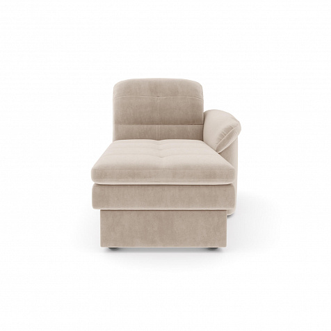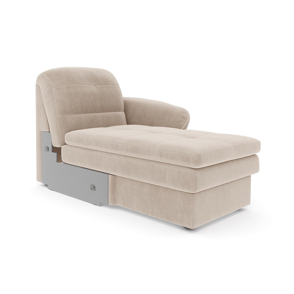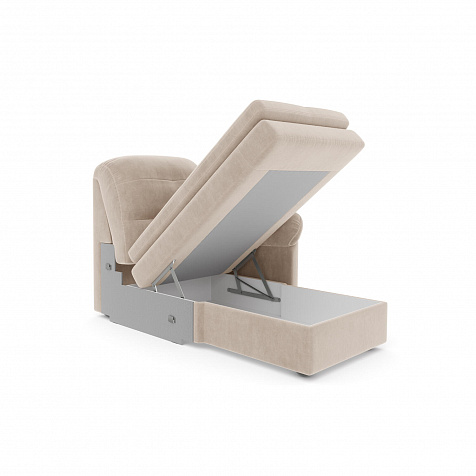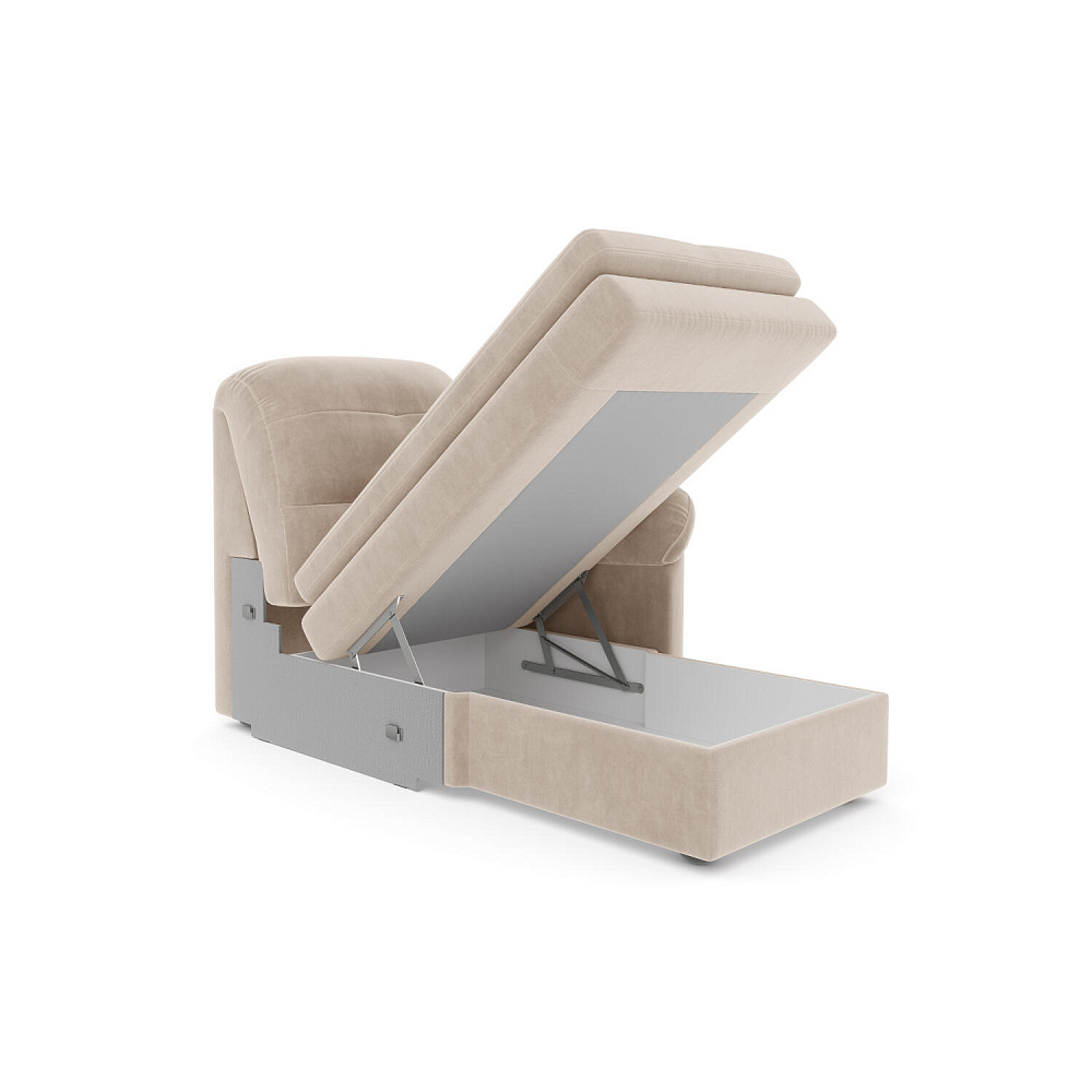 Правая оттоманка «Коннери» является частью модульной системы одноименной коллекции, позволяя составить идеальный угловой диван для вашей гостиной. Модель будет не только удобным местом для отдыха, но и зоной для хранения личных вещей. Сиденье кресла за счет особых эргономических свойств отличается комфортом. Под подъемным основанием находится вместительный ящик для хранения белья.