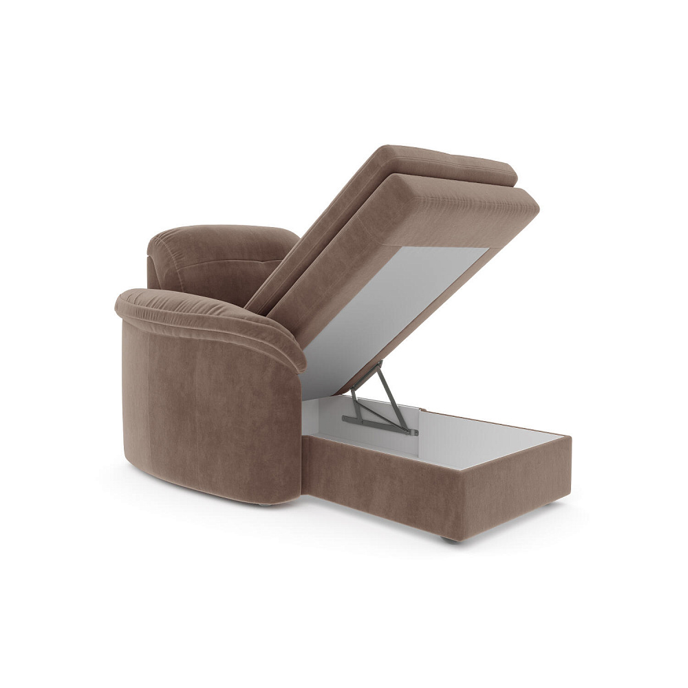Левая оттоманка «Коннери» является частью модульной системы одноименной коллекции, позволяя составить идеальный угловой диван для вашей гостиной. Модель будет не только удобным местом для отдыха, но и зоной для хранения личных вещей. Сиденье кресла за счет особых эргономических свойств отличается комфортом. Под подъемным основанием находится вместительный ящик для хранения белья.