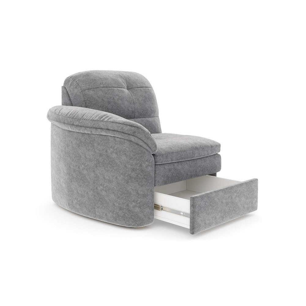Кресло с левым подлокотником и ящиком «Коннери» является частью модульной системы одноименной коллекции, позволяя составить идеальный диван для вашей гостиной. Модель с ящиком будет не только удобным местом для отдыха, но и зоной для хранения личных вещей. Сиденье кресла за счет особых эргономических свойств отличается комфортом. Под основанием находится ящик для хранения белья, который легко открывается с помощью надежного выкатного механизма на шариковых направляющих.