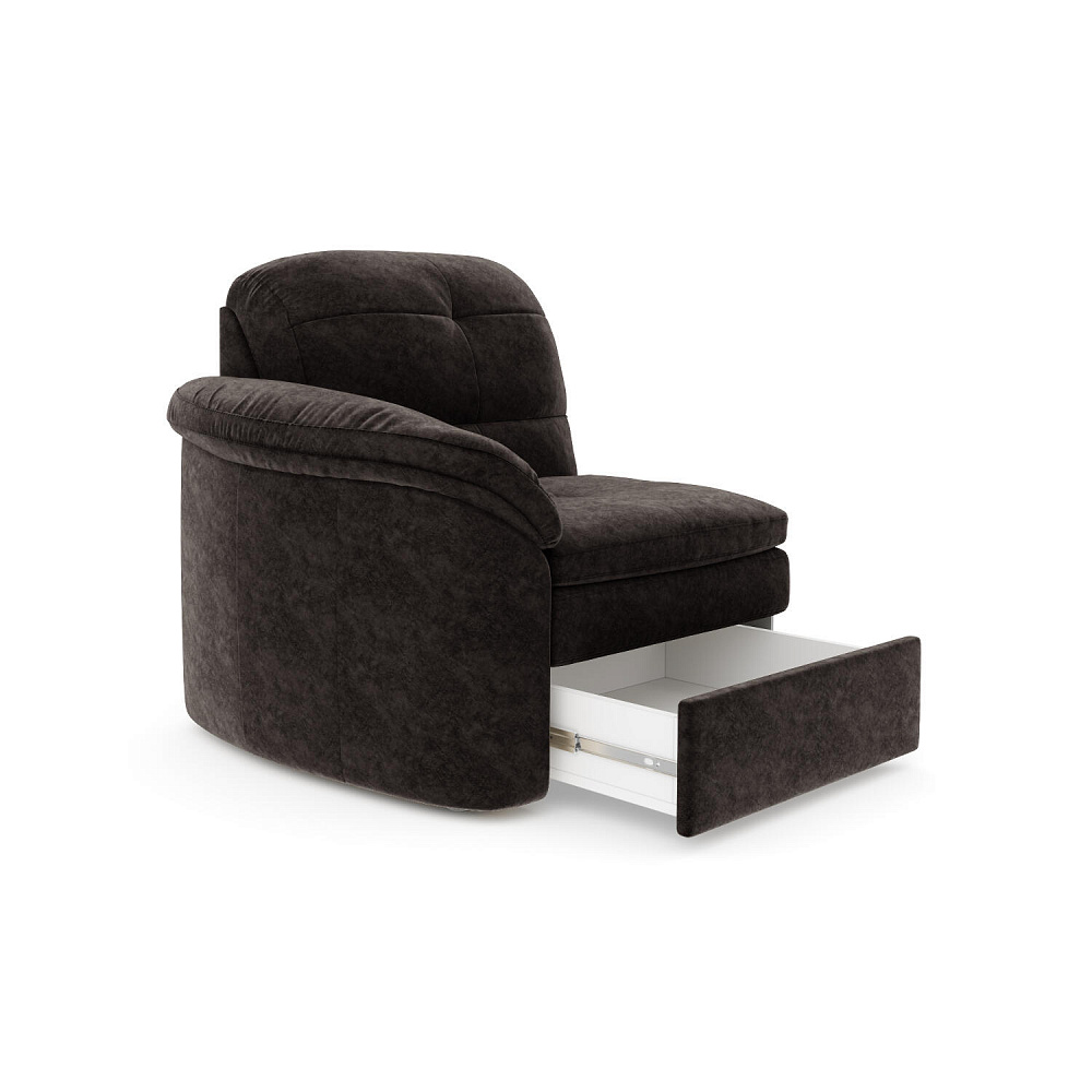 Кресло с левым подлокотником и ящиком «Коннери» является частью модульной системы одноименной коллекции, позволяя составить идеальный диван для вашей гостиной. Модель с ящиком будет не только удобным местом для отдыха, но и зоной для хранения личных вещей. Сиденье кресла за счет особых эргономических свойств отличается комфортом. Под основанием находится ящик для хранения белья, который легко открывается с помощью надежного выкатного механизма на шариковых направляющих.