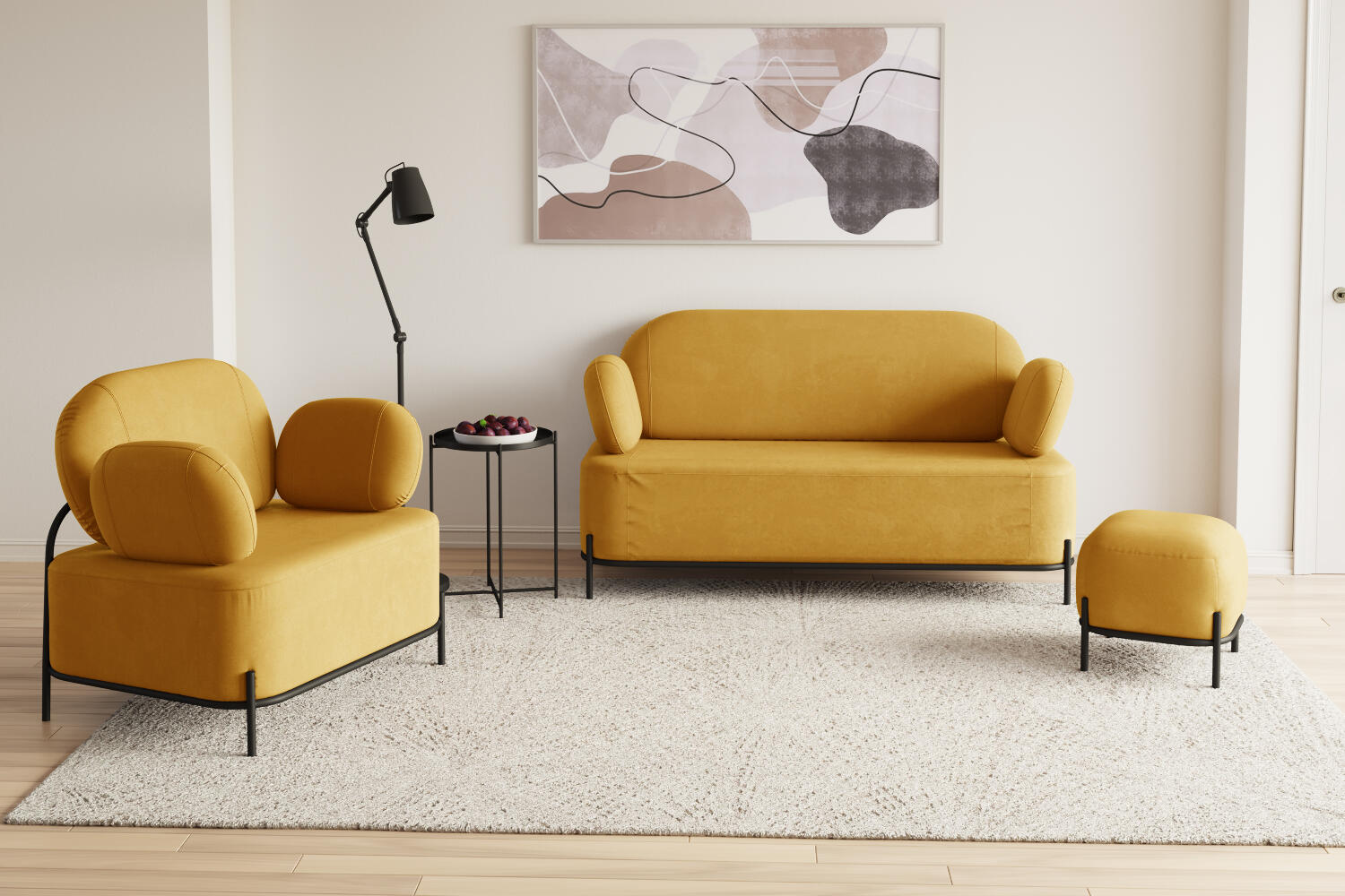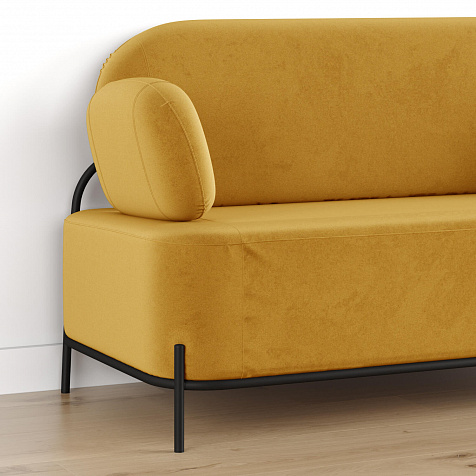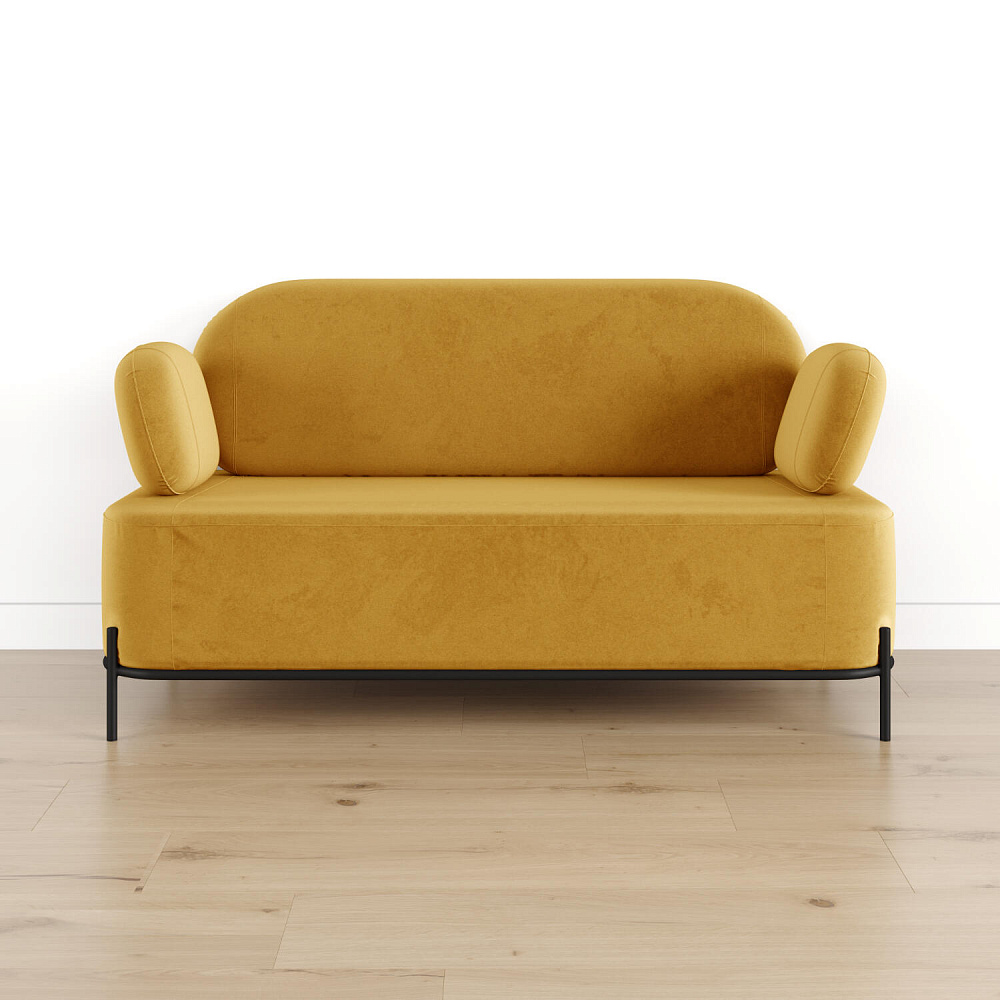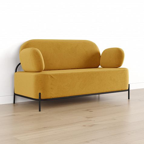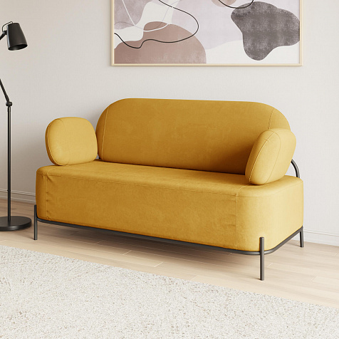 Двухместный диван «Луффи» с подлокотниками — это находка для ценителей оригинальных решений в интерьере. Контрастное сочетание мягких форм и тонких металлических опор поможет создать уютную и легкую зону отдыха. Задняя часть спинки выполнена в обивочной ткани, что позволяет разместить диван в центре комнаты для зонирования пространства.