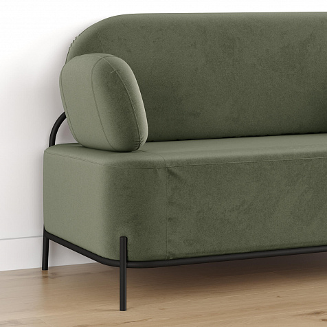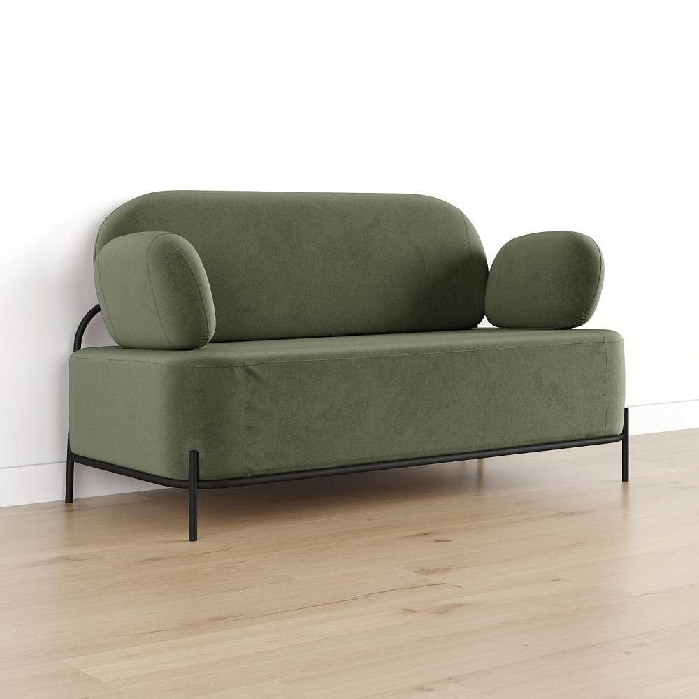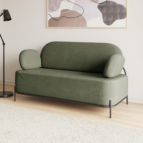 Двухместный диван «Луффи» с подлокотниками — это находка для ценителей оригинальных решений в интерьере. Контрастное сочетание мягких форм и тонких металлических опор поможет создать уютную и легкую зону отдыха. Задняя часть спинки выполнена в обивочной ткани, что позволяет разместить диван в центре комнаты для зонирования пространства.