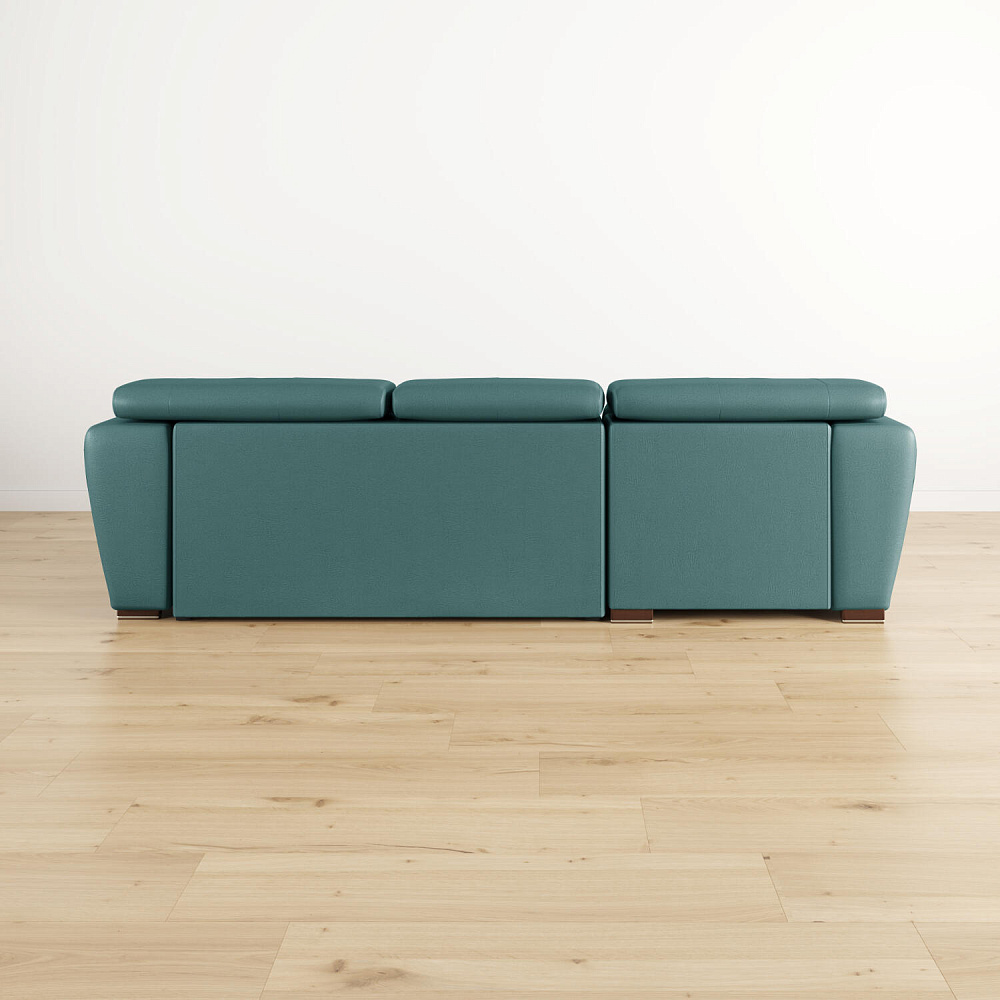 Зонирование пространства. Спинка выполнена в той же обивке, что и весь диван. Модель будет изумительно смотреться как у стены, так и в центре комнаты.