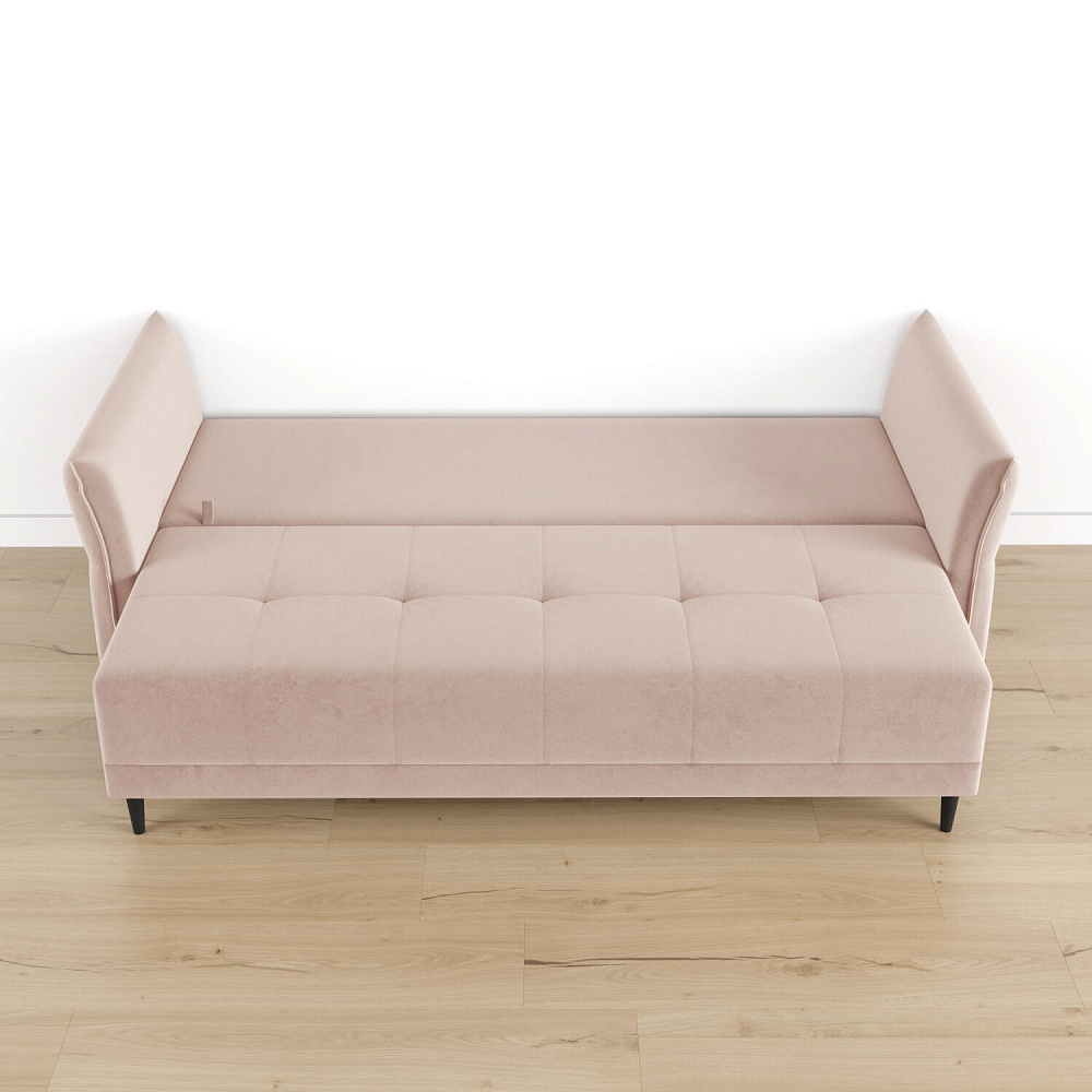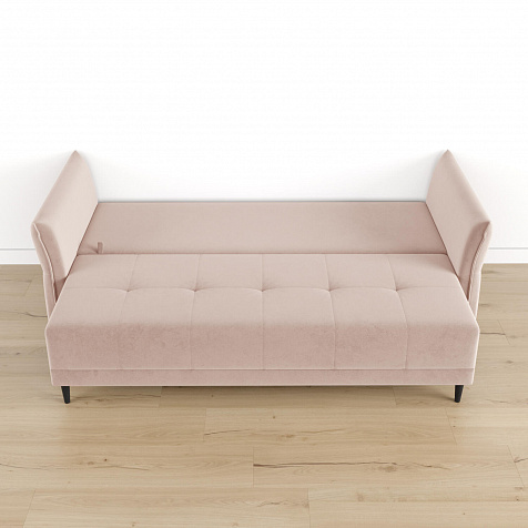 Механизм трансформации «Еврокнижка». Диван легко раскладывается — нужно выдвинуть вперед сиденье и опустить спинку. Удобен механизм ещё тем, что двигается только передняя часть, поэтому отодвигать диван от стены не требуется.