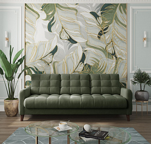 - Деревянные опоры. Высокие ножки из массива березы визуально облегчают конструкцию и открывают доступ к уборке пространства под диваном.