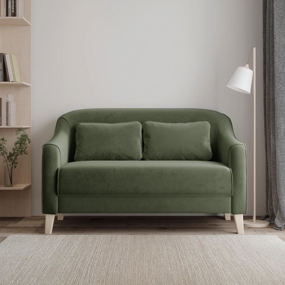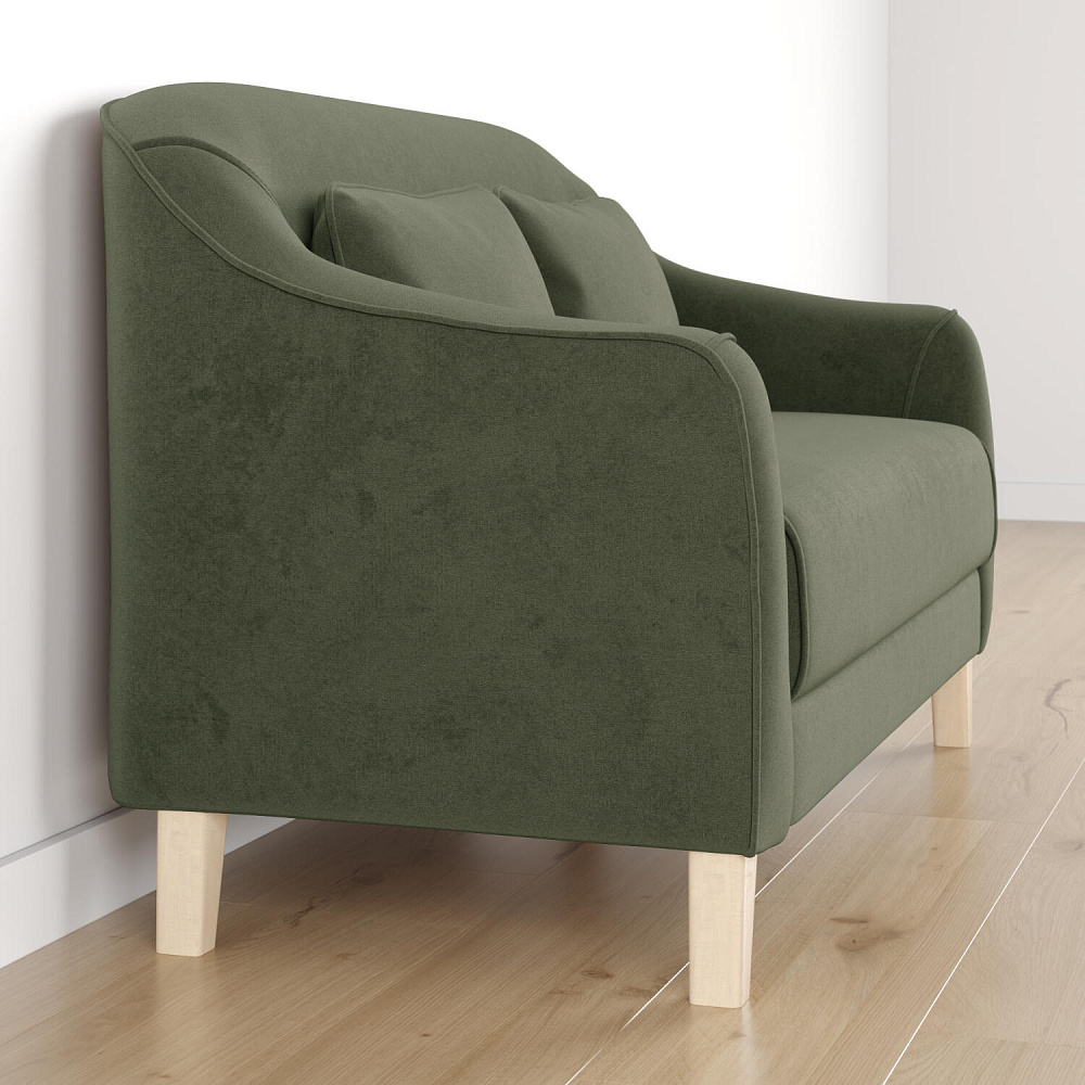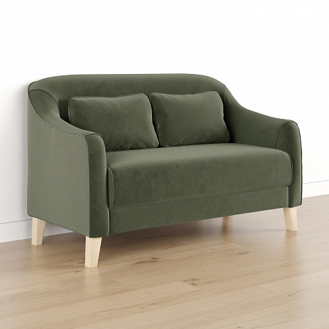 - Деревянные опоры. Высокие ножки из массива березы визуально облегчают конструкцию и открывают доступ к уборке пространства под диваном.